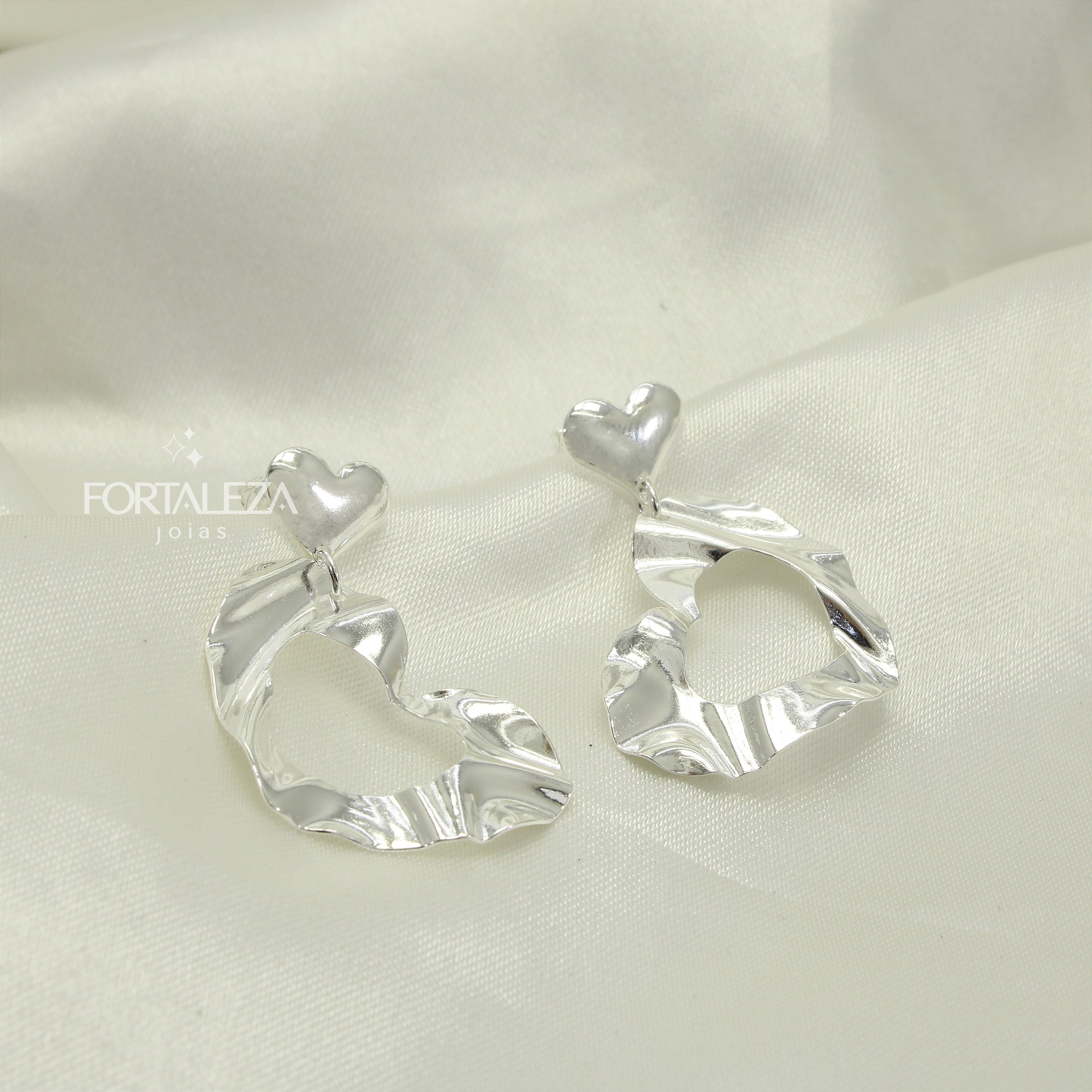 Brinco de Coração com Design Ondulado e Banhado com 30 Milésimos de Teor de Prata 925 e Finalizado com Verniz de Nanotecnologia