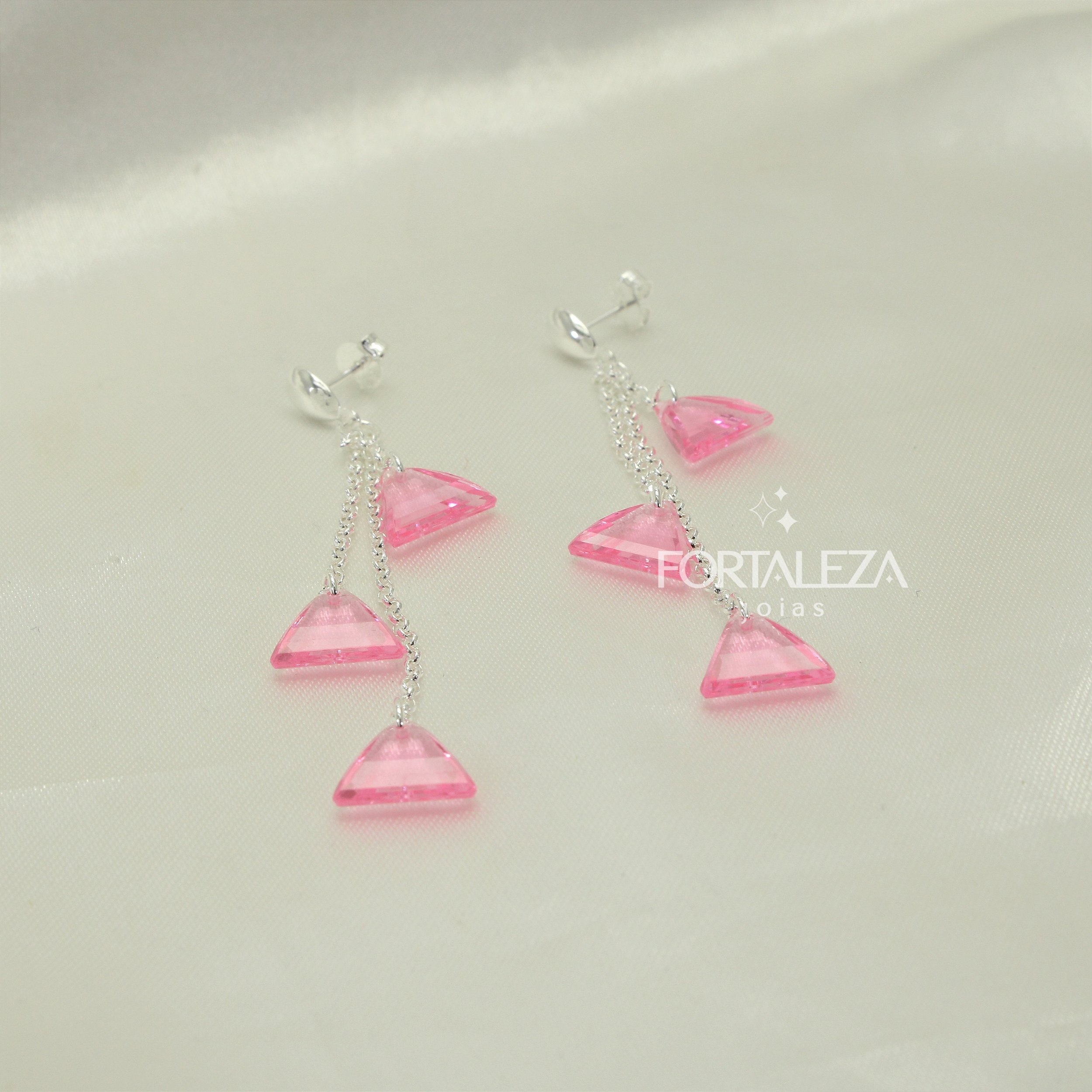 Brinco Pêndulo com Pingentes Triangulares Banhado com 30 Milésimos de Teor de Prata 925 e Finalizado com Verniz de Nanotecnologia