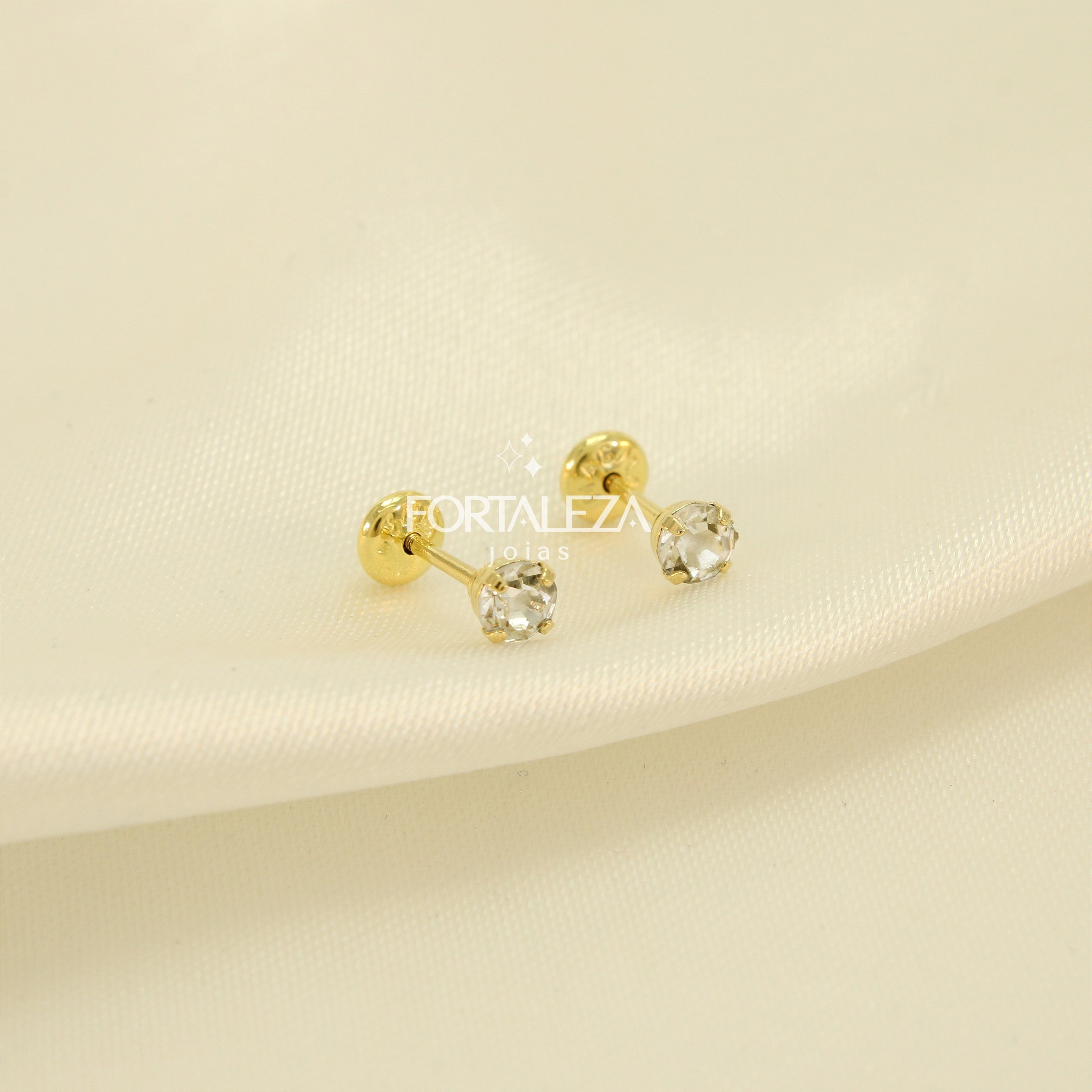 Brinco Ponto de Luz com Zircônia Cristal Banhado a Ouro 18k