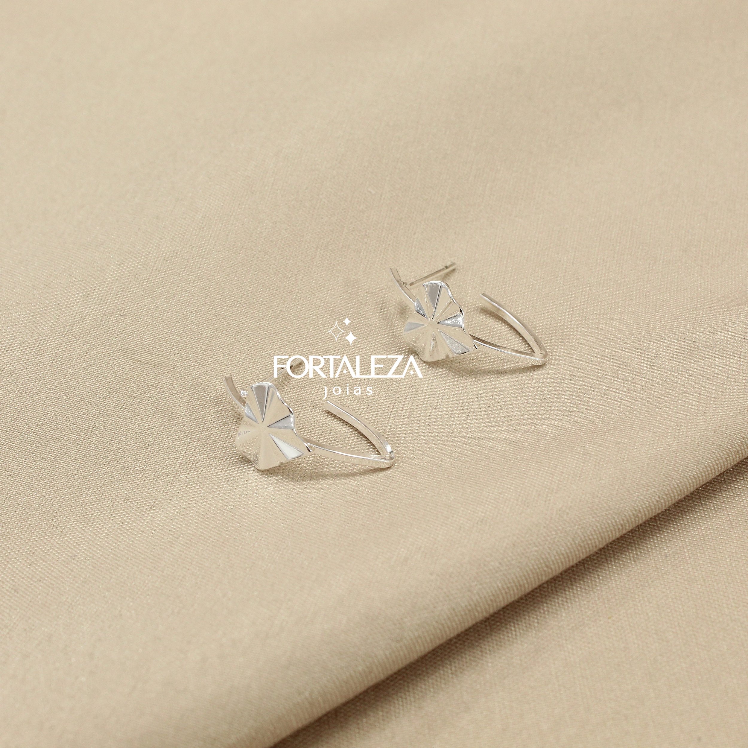 Brinco Argola Coração com Design Navete Banhado a Prata