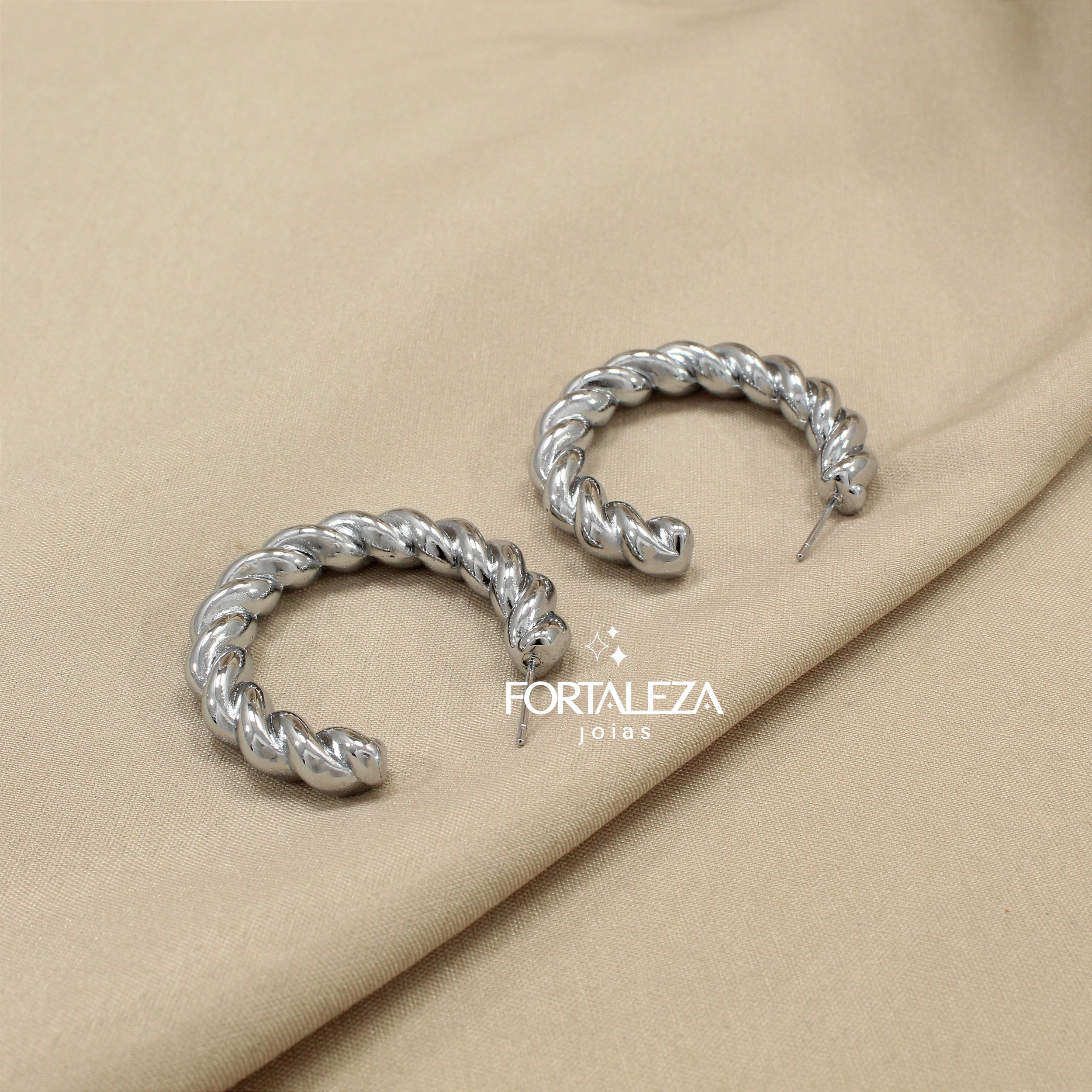 Brinco Argola com Design Torcido Banhado a Ouro Branco