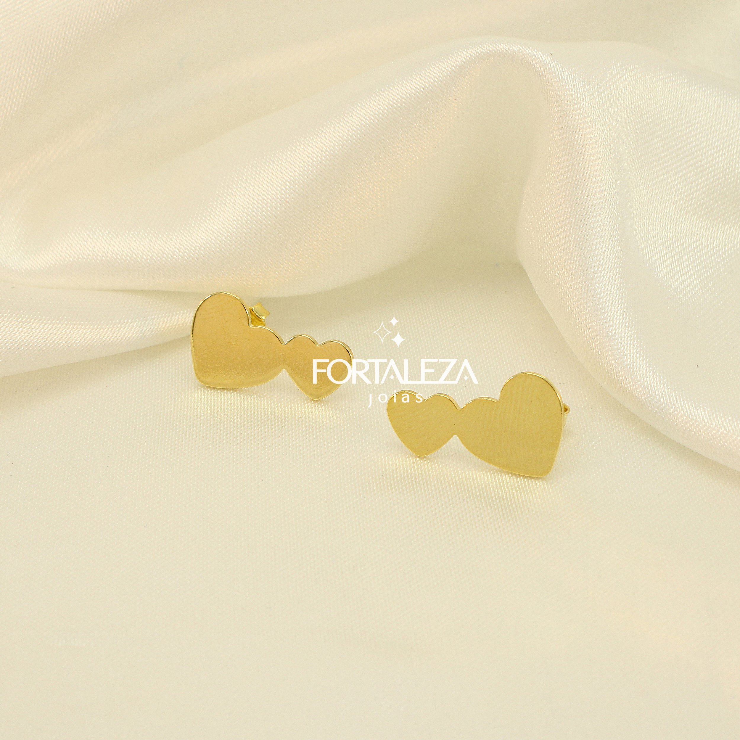 Brinco Ear Cuff de Corações Banhado a Ouro 18k