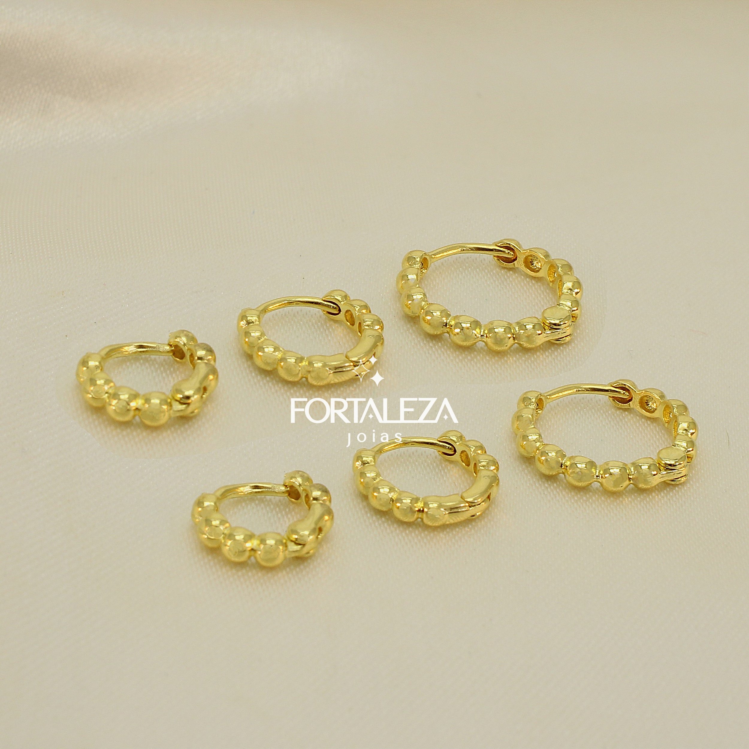 Brinco Argola em Trio de Bolinha Banhado a Ouro 18k