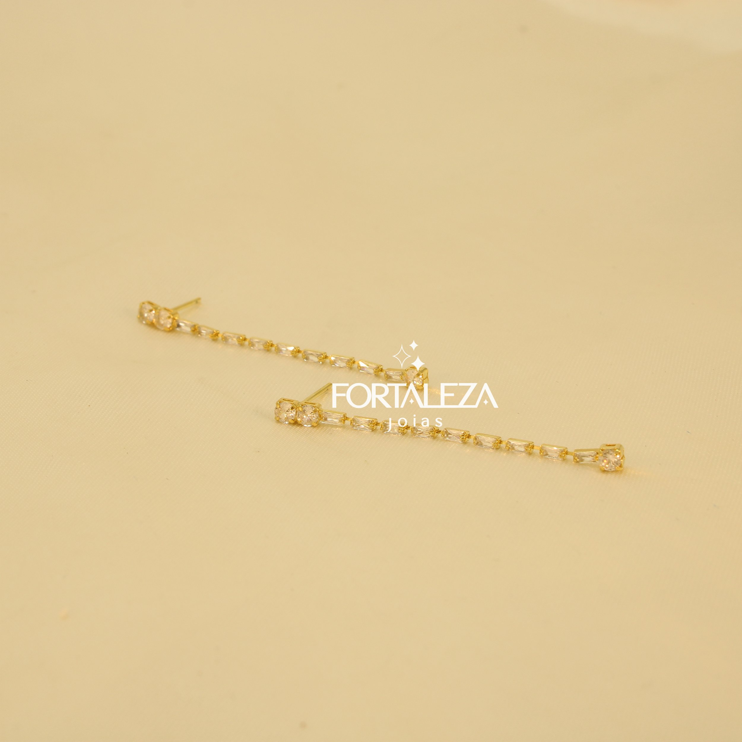Brinco Cravejado em Zircônia Cristal Banhado a Ouro 18k