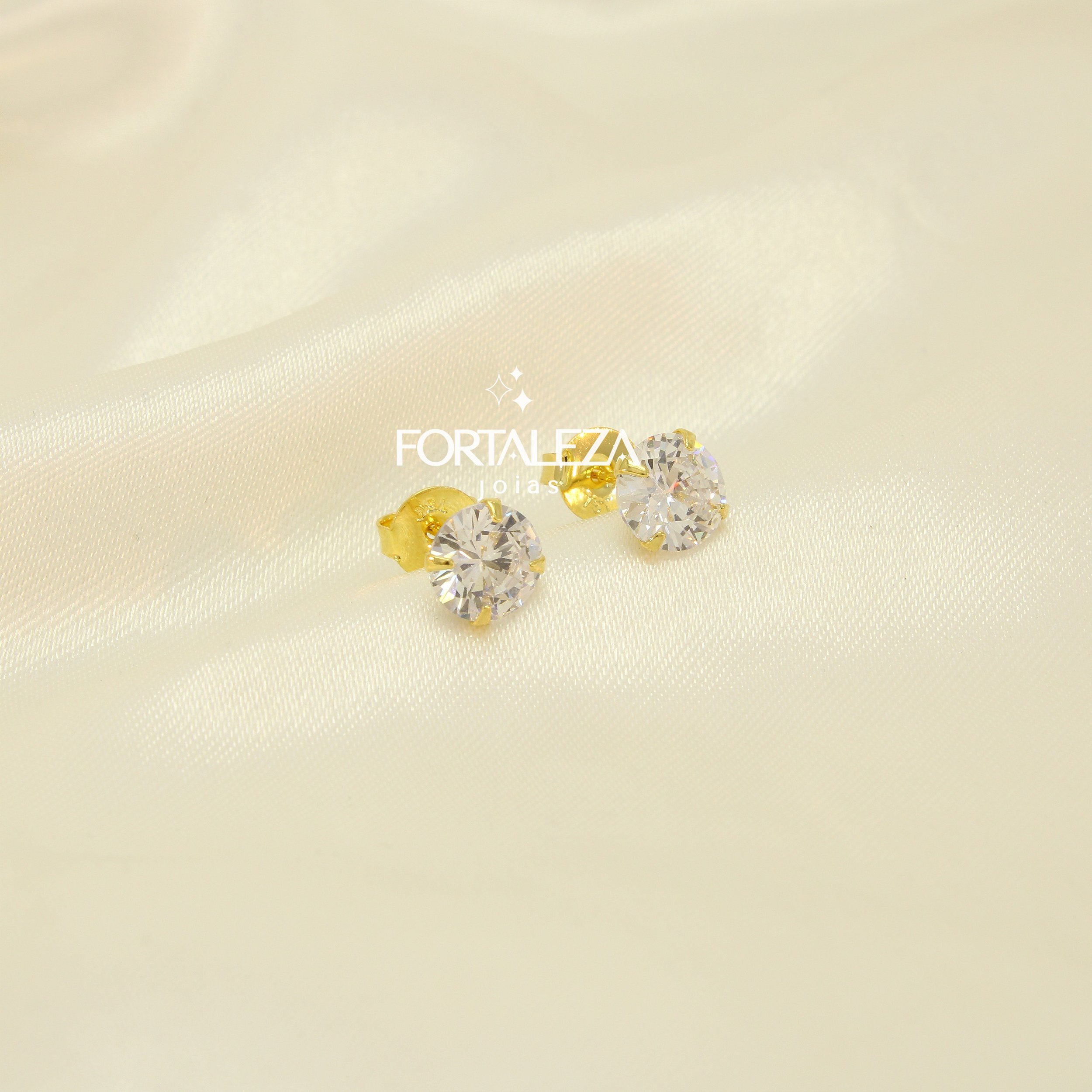 Brinco Ponto de Luz com Zircônia Cristal Banhado a Ouro 18k