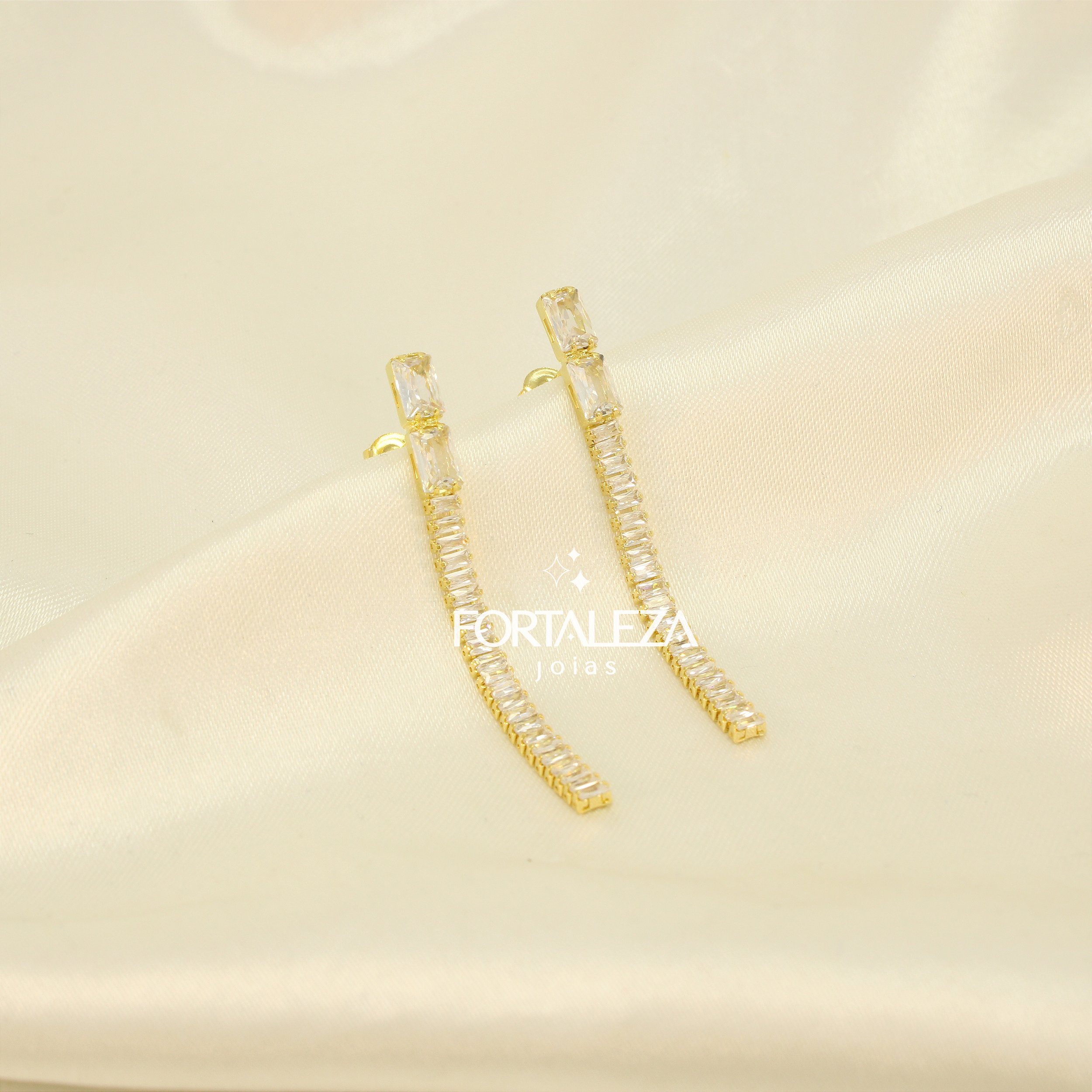 Brinco Cravejado em Zircônia Cristal Banhado a Ouro 18k