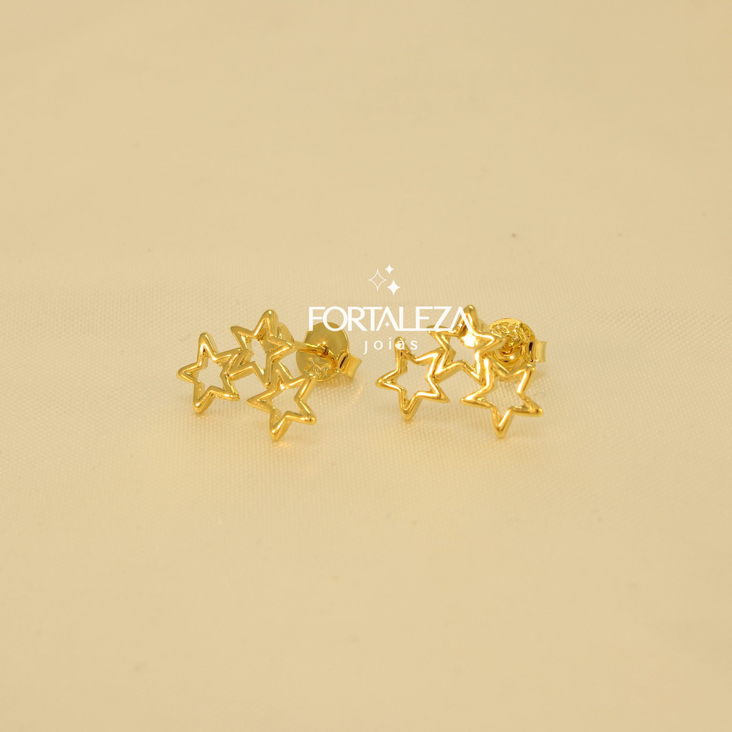 Brinco Mini Ear Cuff de Estrelas Banhado a Ouro 18k