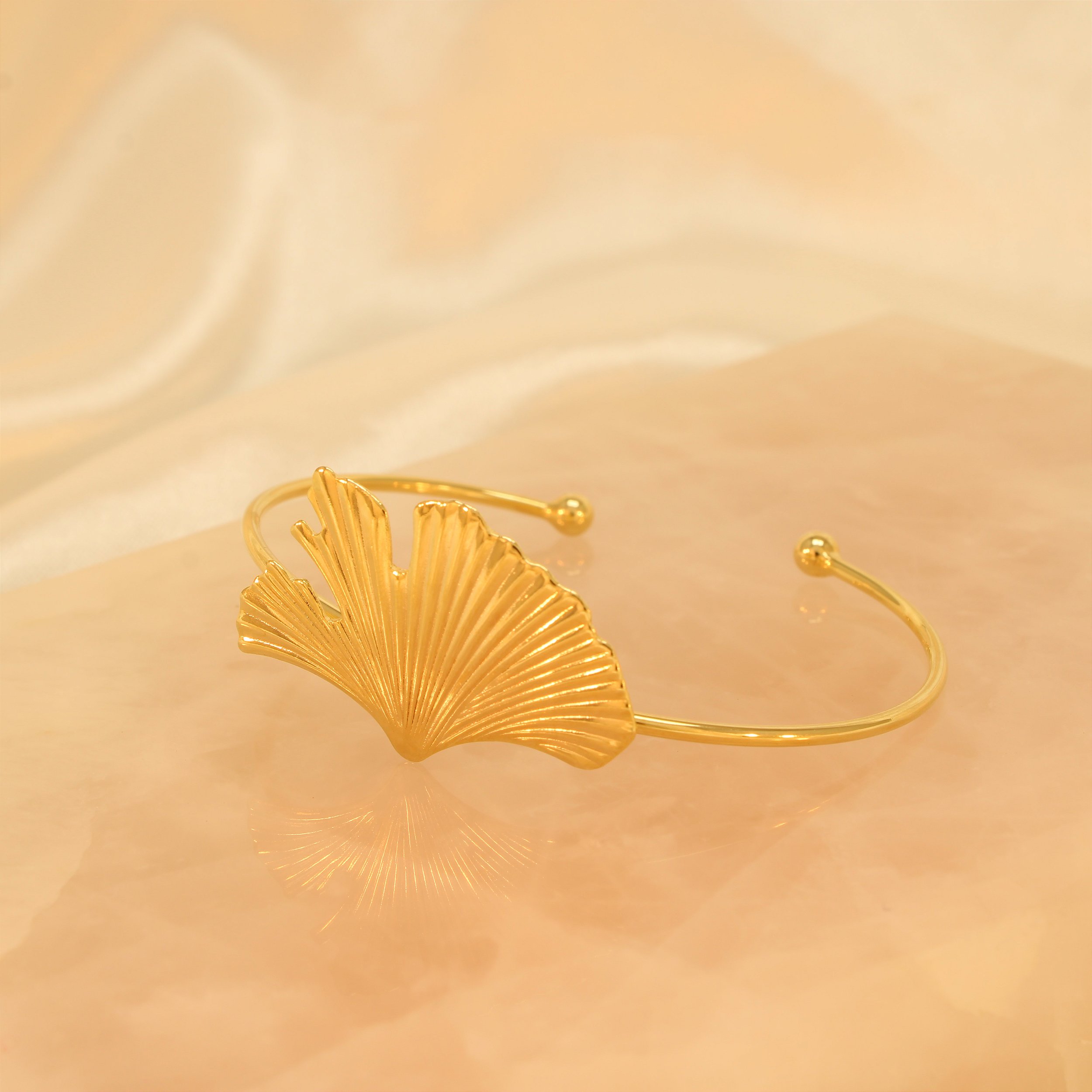 Bracelete de Folha Plissada Folheado a Ouro 18k