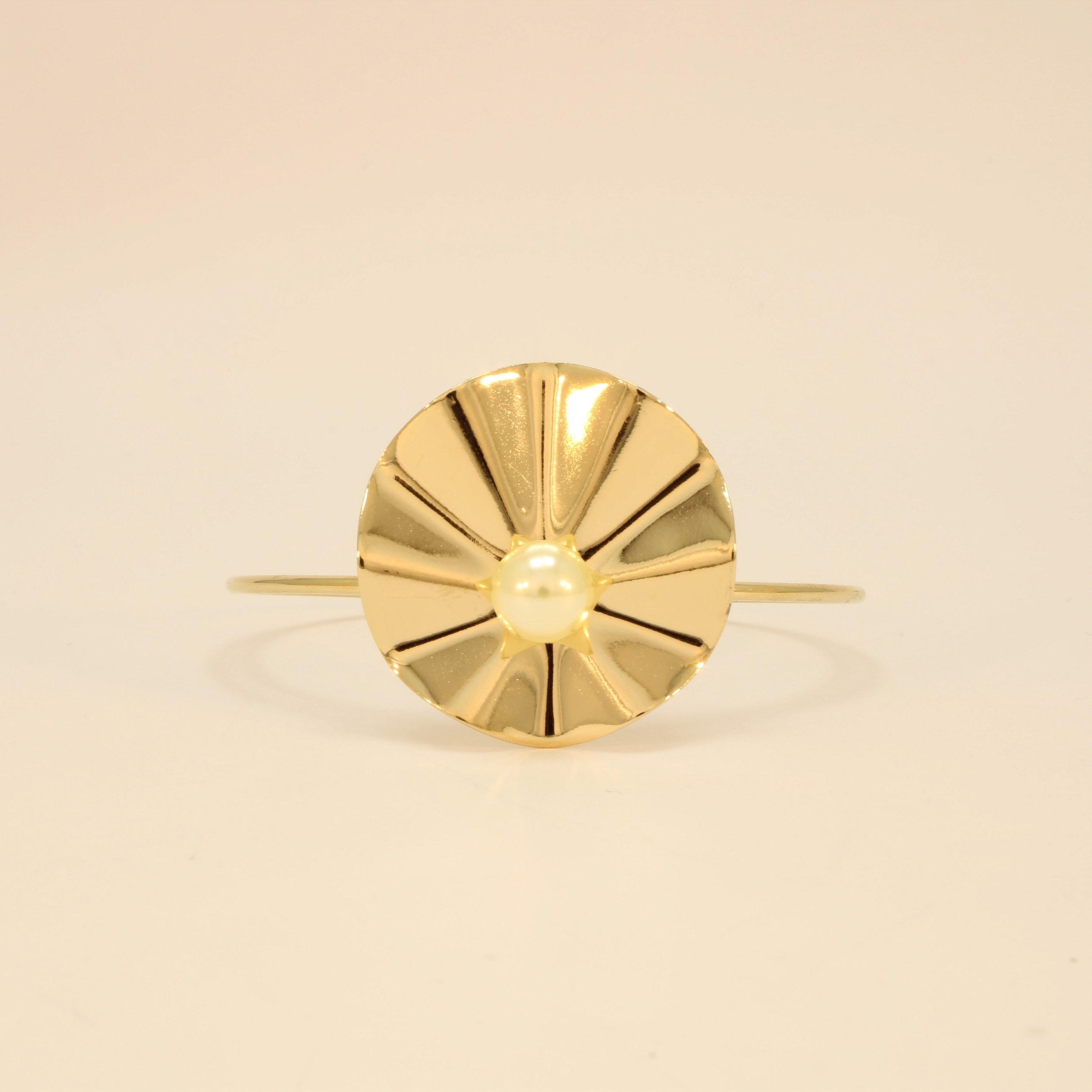 Bracelete de Flor Orgânica e Pérola Banhado a Ouro 18k