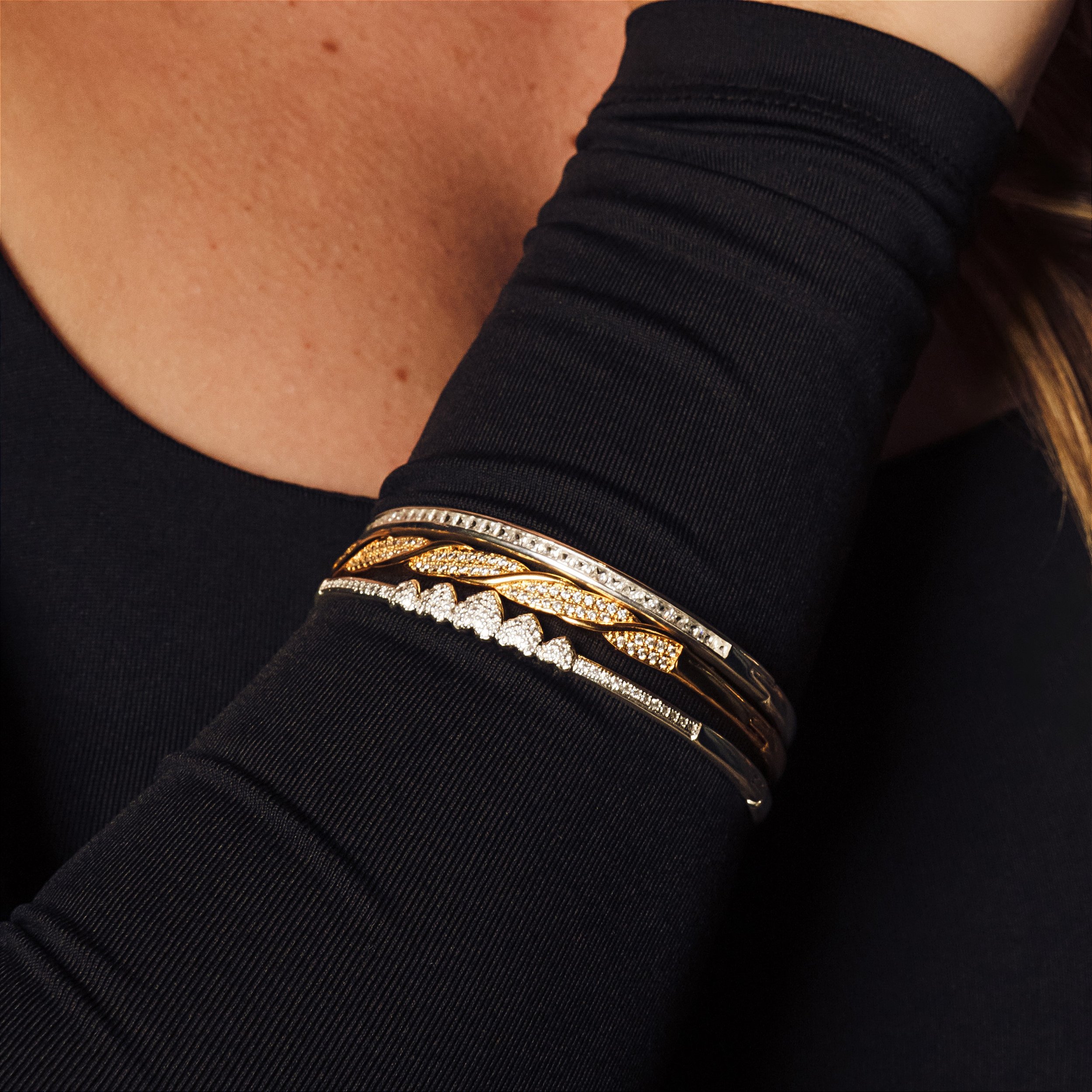 Bracelete com Design Torcido Cravejado em Zircônia Cristal e Banhado a Ouro 18k
