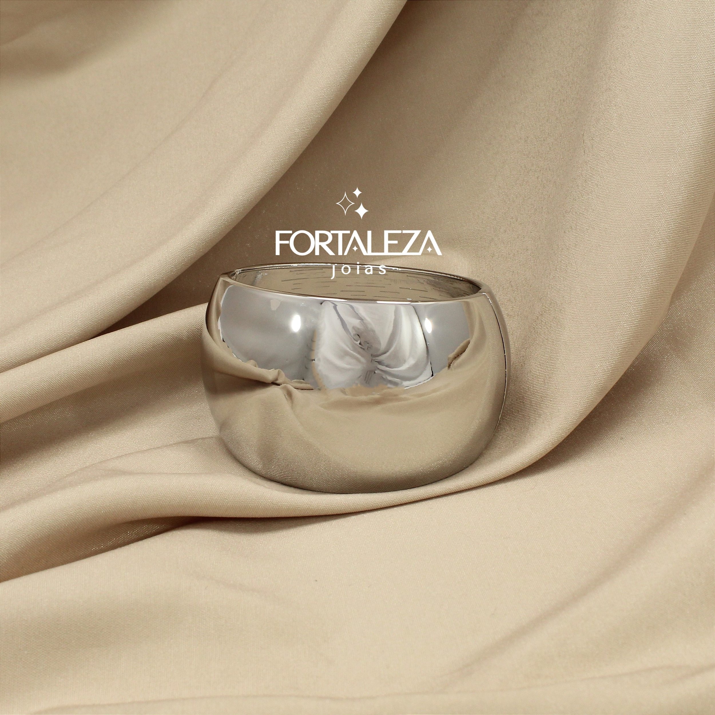 Bracelete Largo Polido Banhado a Ródio Branco