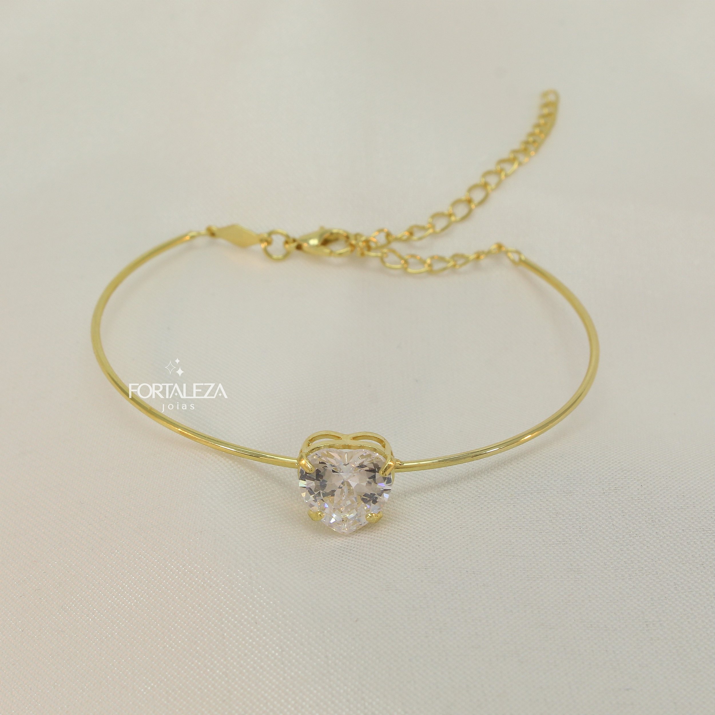Bracelete com Coração de Zircônia Cristal Banhado a Ouro 18k