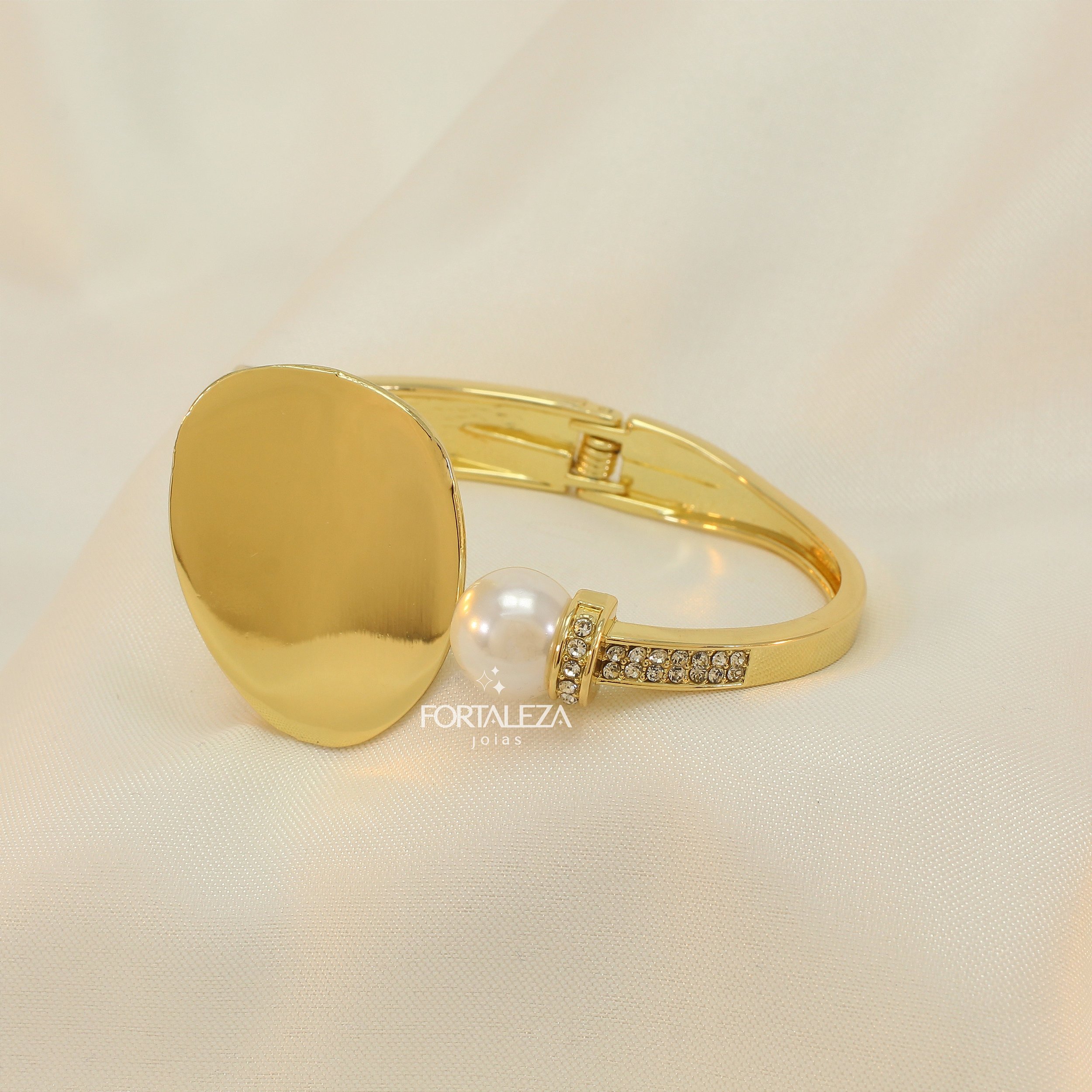 Bracelete com Detalhe de Pérola e Zircônia Cristal Banhado a Ouro 18k