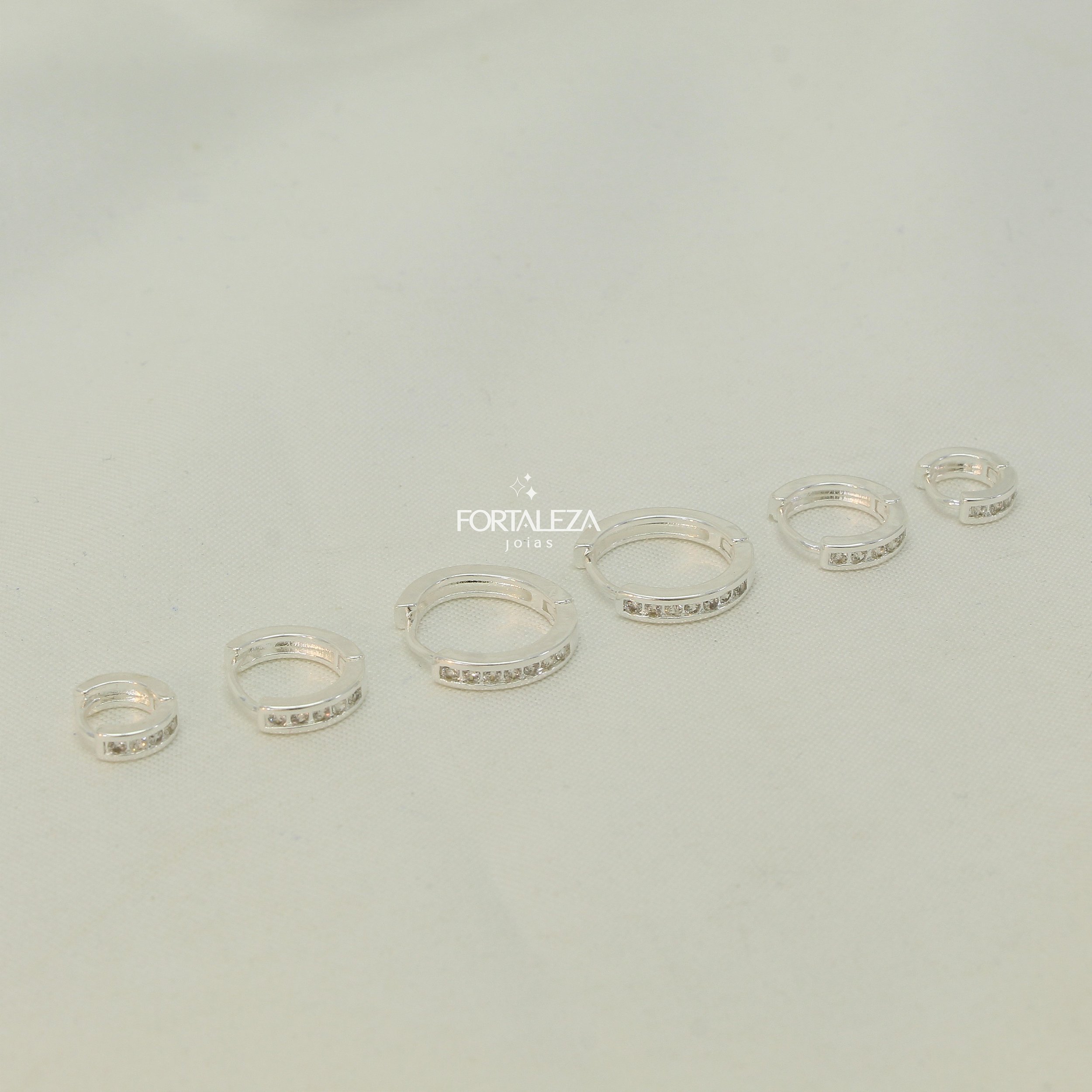 Brinco Argola em Trio com Zircônia Cristal Banhado a Prata