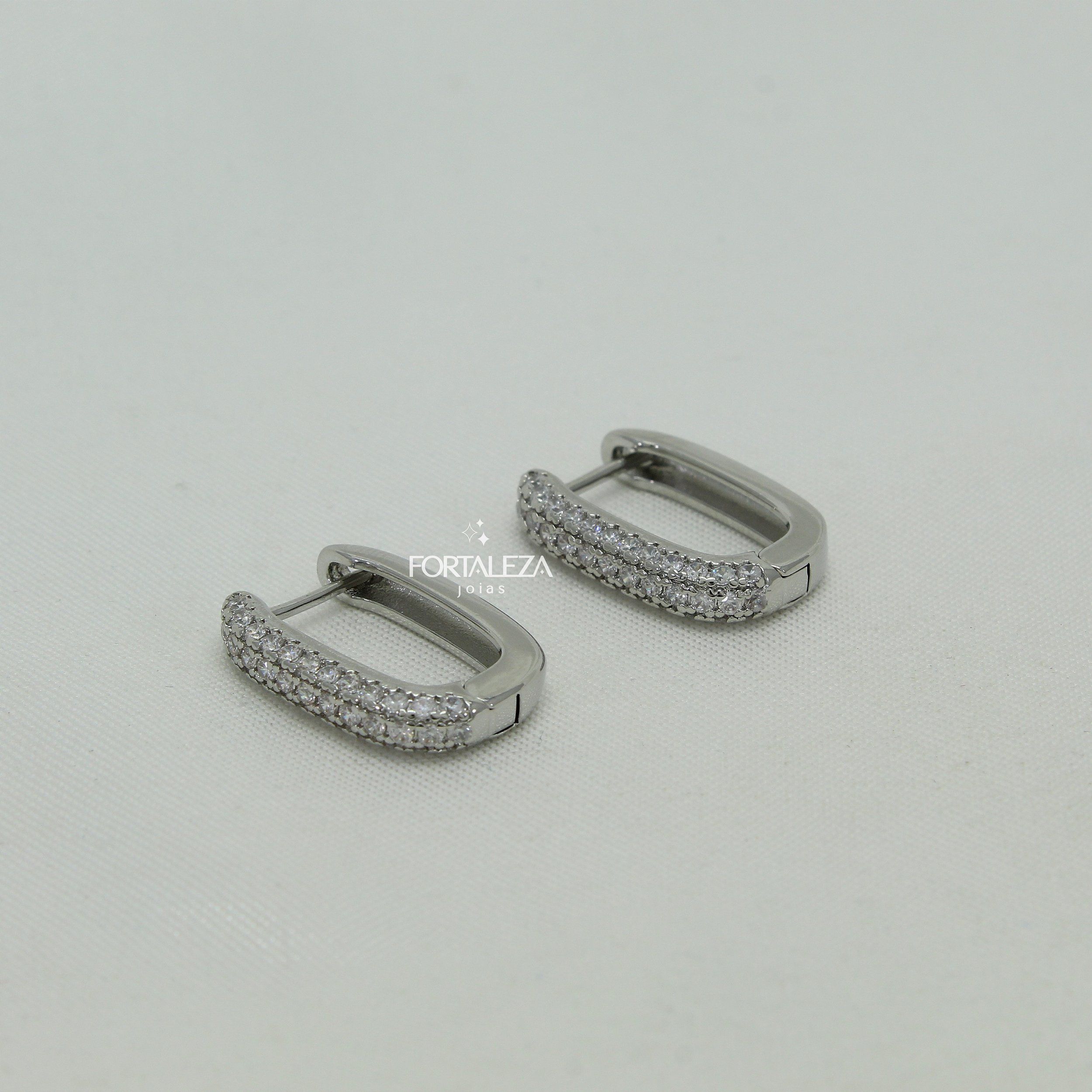 Brinco Argola Oval Cravejado com Zircônia Cristal Banhado a Ouro Branco