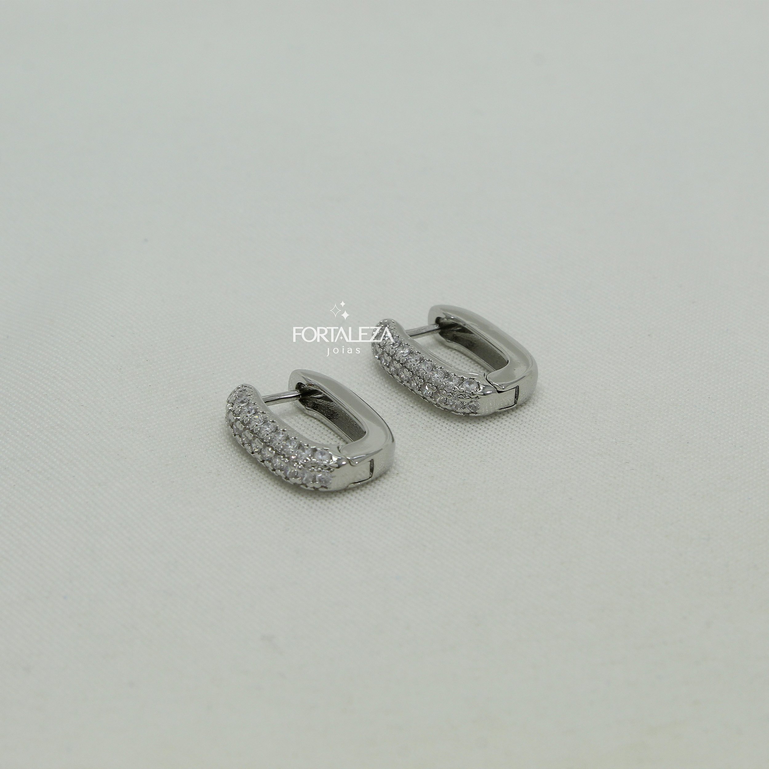 Brinco Argola Retangular Banhado a Ouro Branco