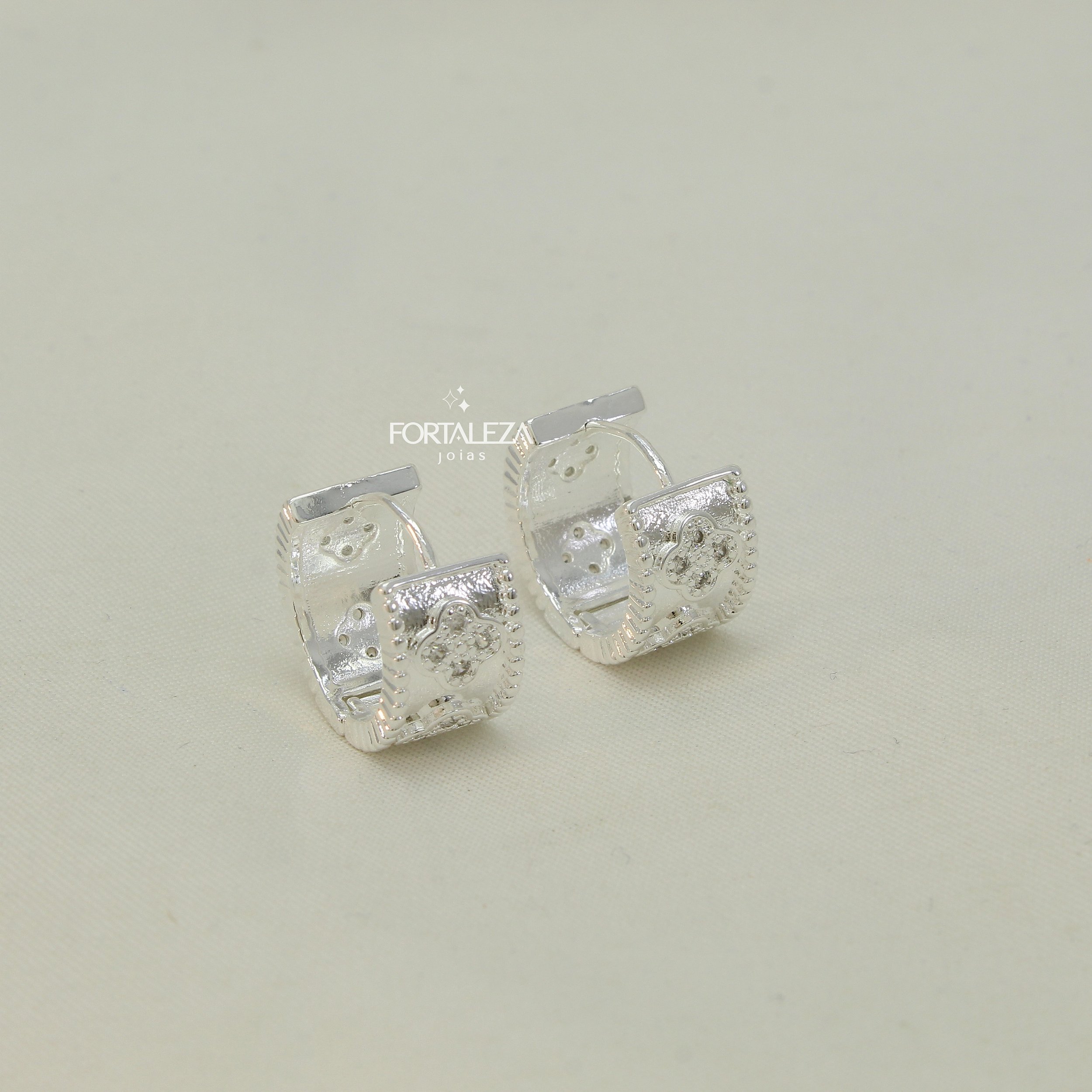 Brinco Argola Trevo Trabalhado em Zircônia Cristal Banhado a Prata