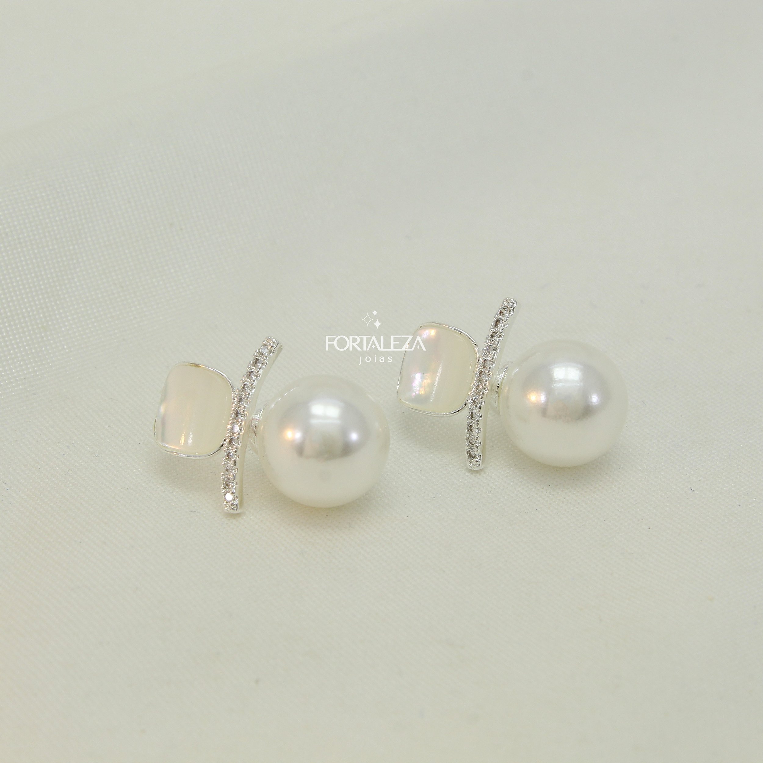 Brinco com Design Geométrico Sofisticado com Zircônia Cristal Banhado a Prata