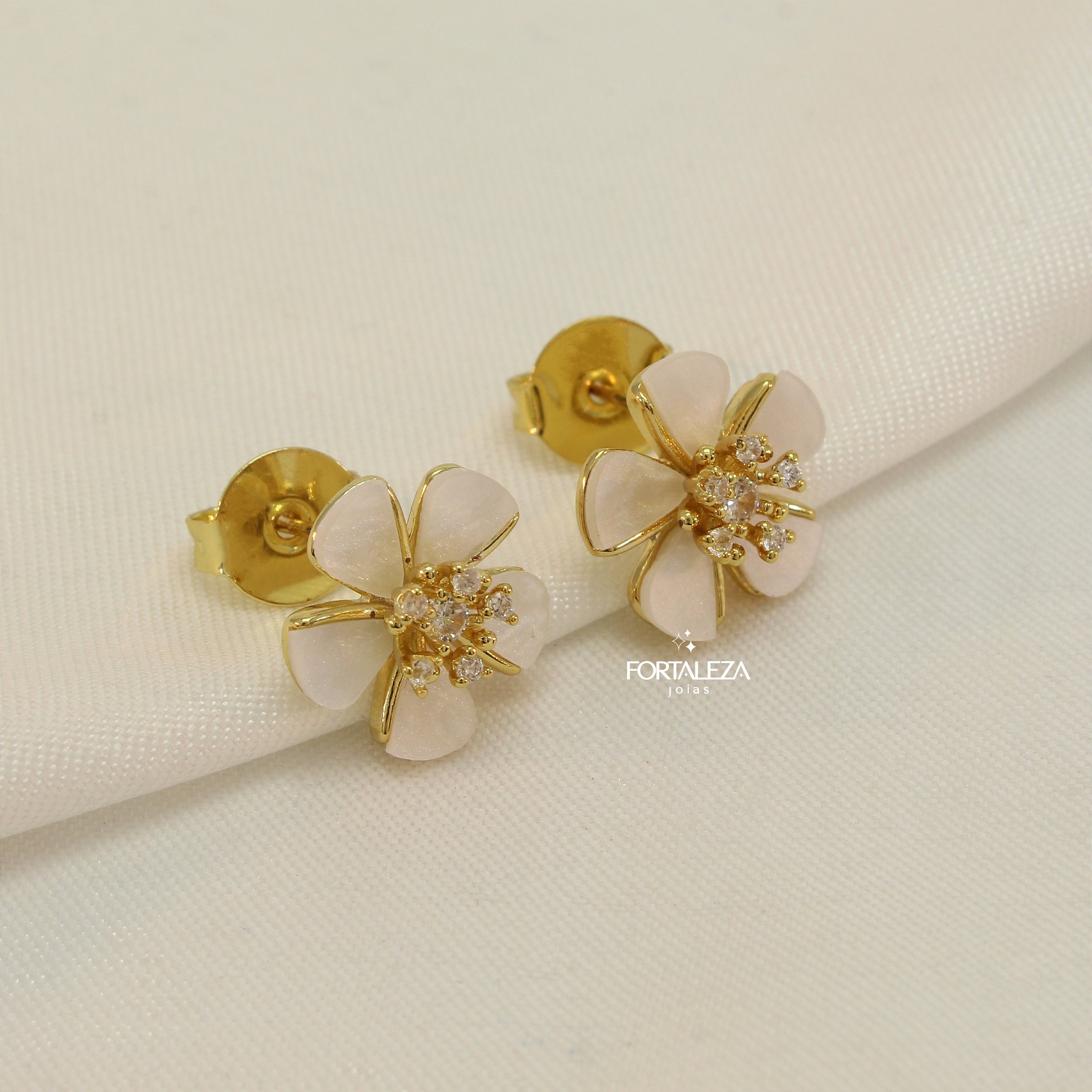 Brinco com Pétalas de Resina com Detalhes de Zircônia Cristal Banhado a Ouro 18k