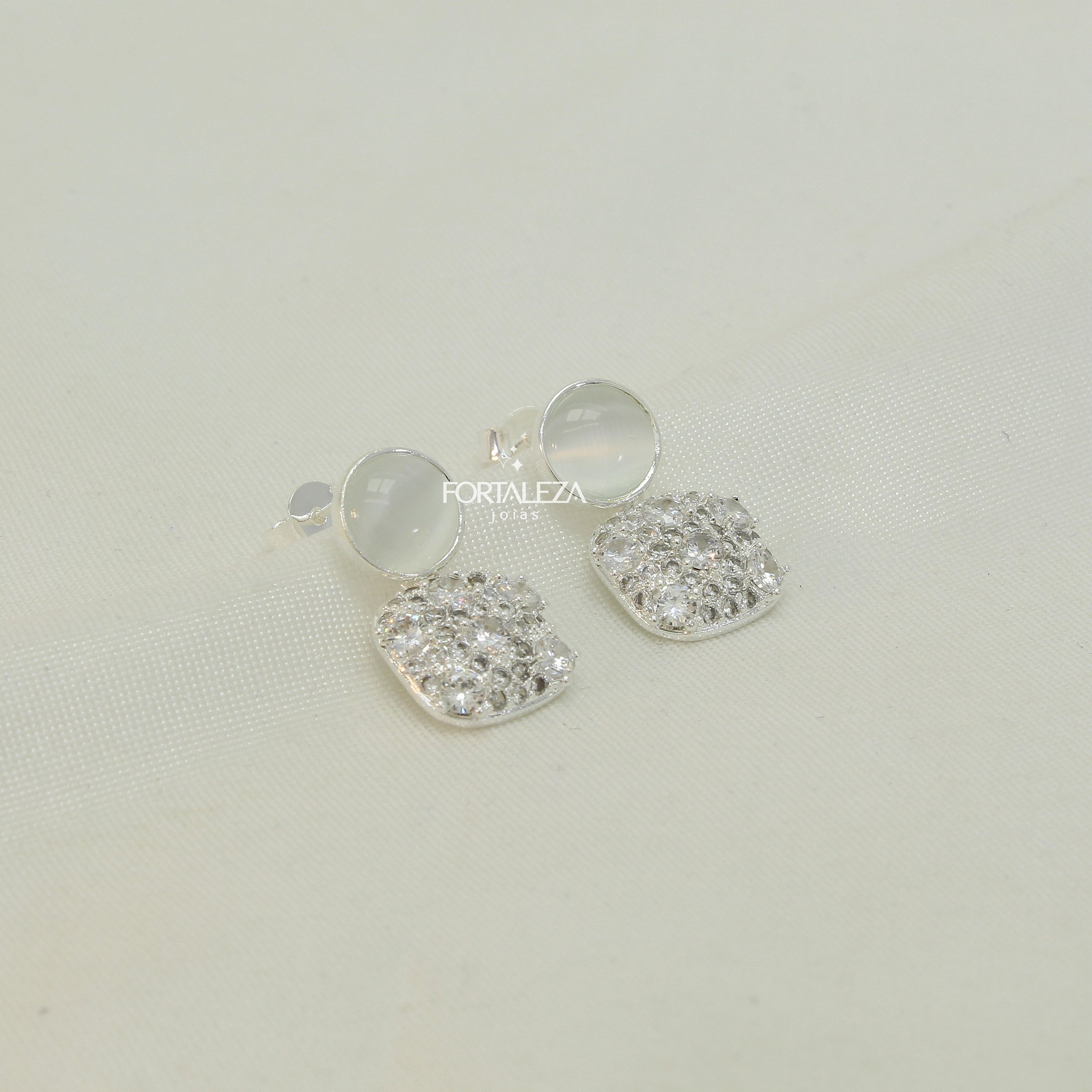 Brinco com Pingente Cravejado e Detalhe de Resina Banhado a Prata