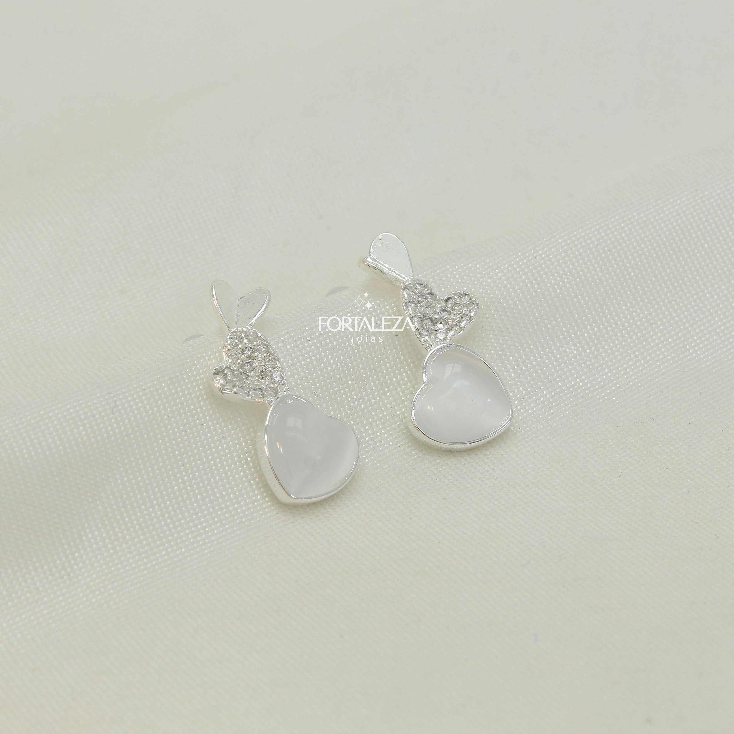 Brinco Coração Triplo Madrepérola e Zircônia Cristal Banhado a Prata