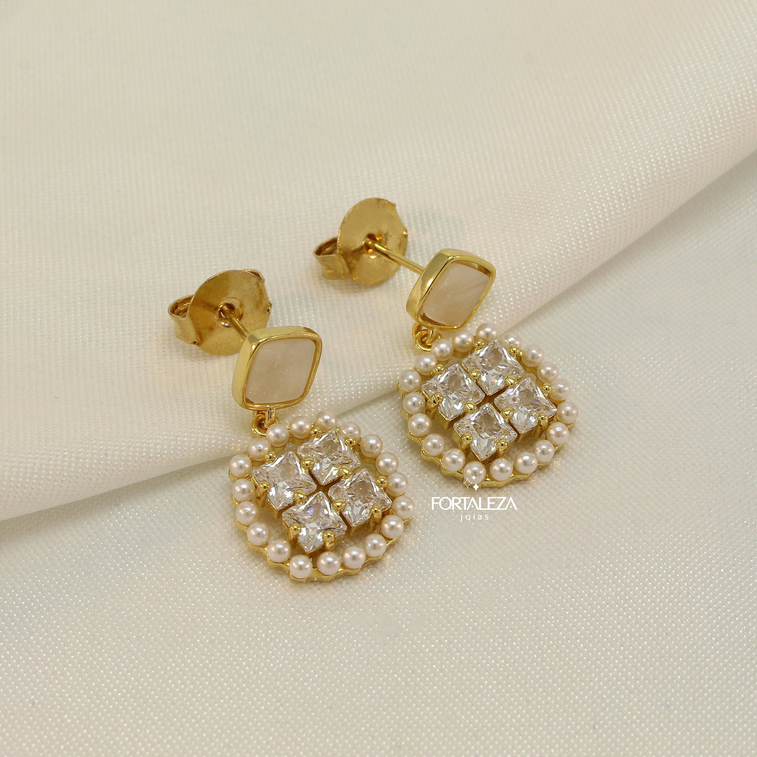 Brinco Cravejado com Mini Pérolas e Zircônia Cristal Banhado a Ouro 18k