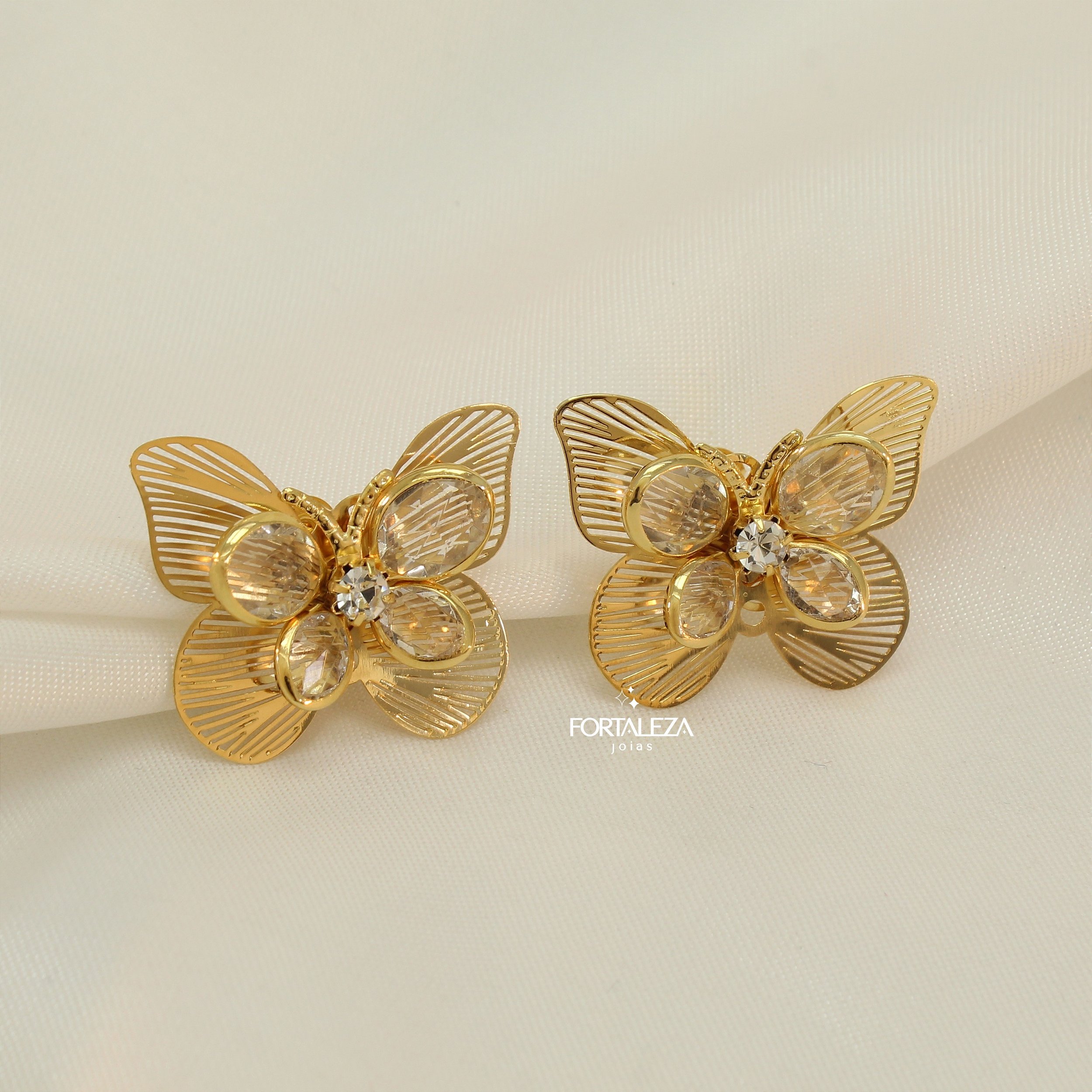 Brinco de Borboleta Trabalhada em Zircônia Cristal Banhado a Ouro 18k