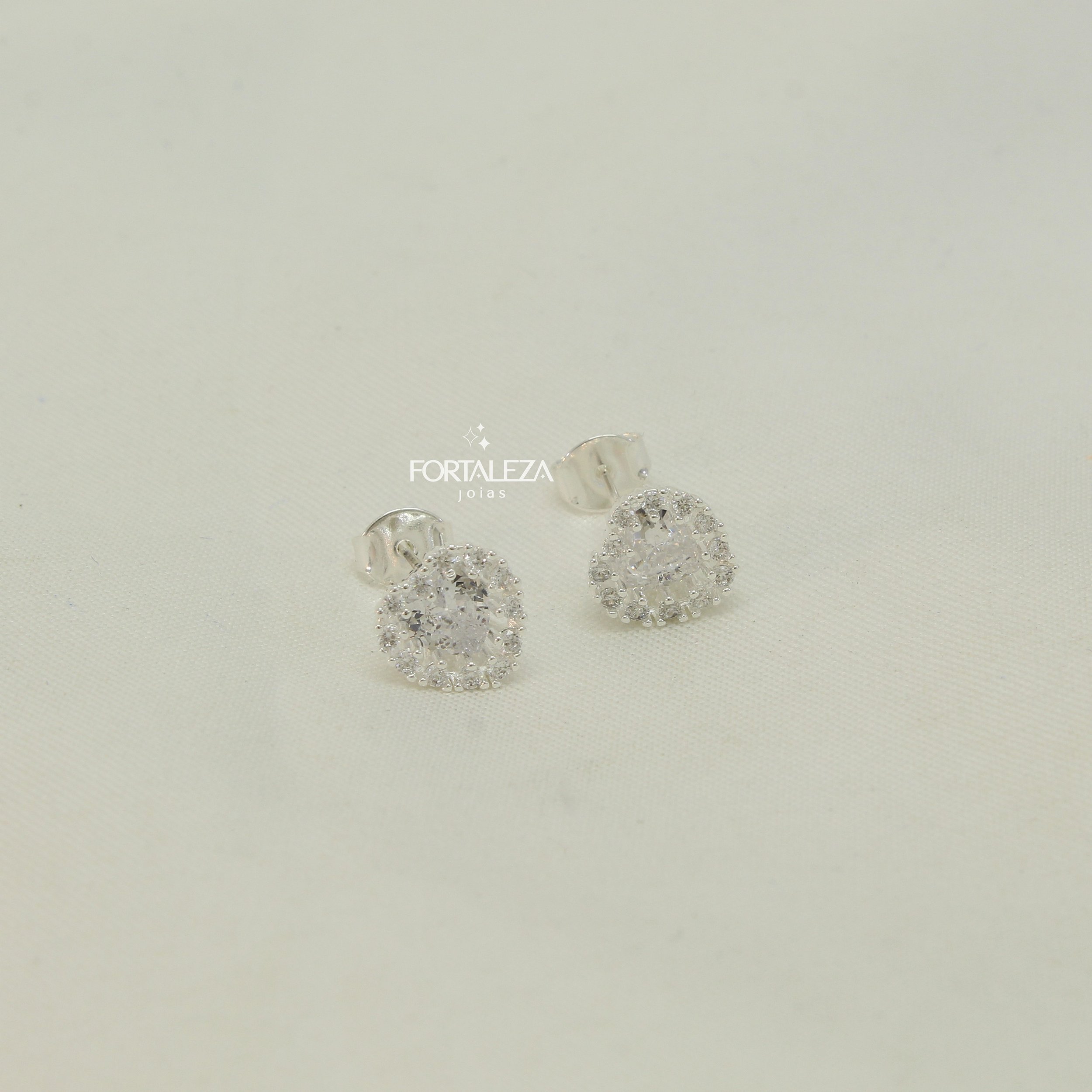 Brinco de Coração Cravejado com Zircônia Cristal Banhado a Prata
