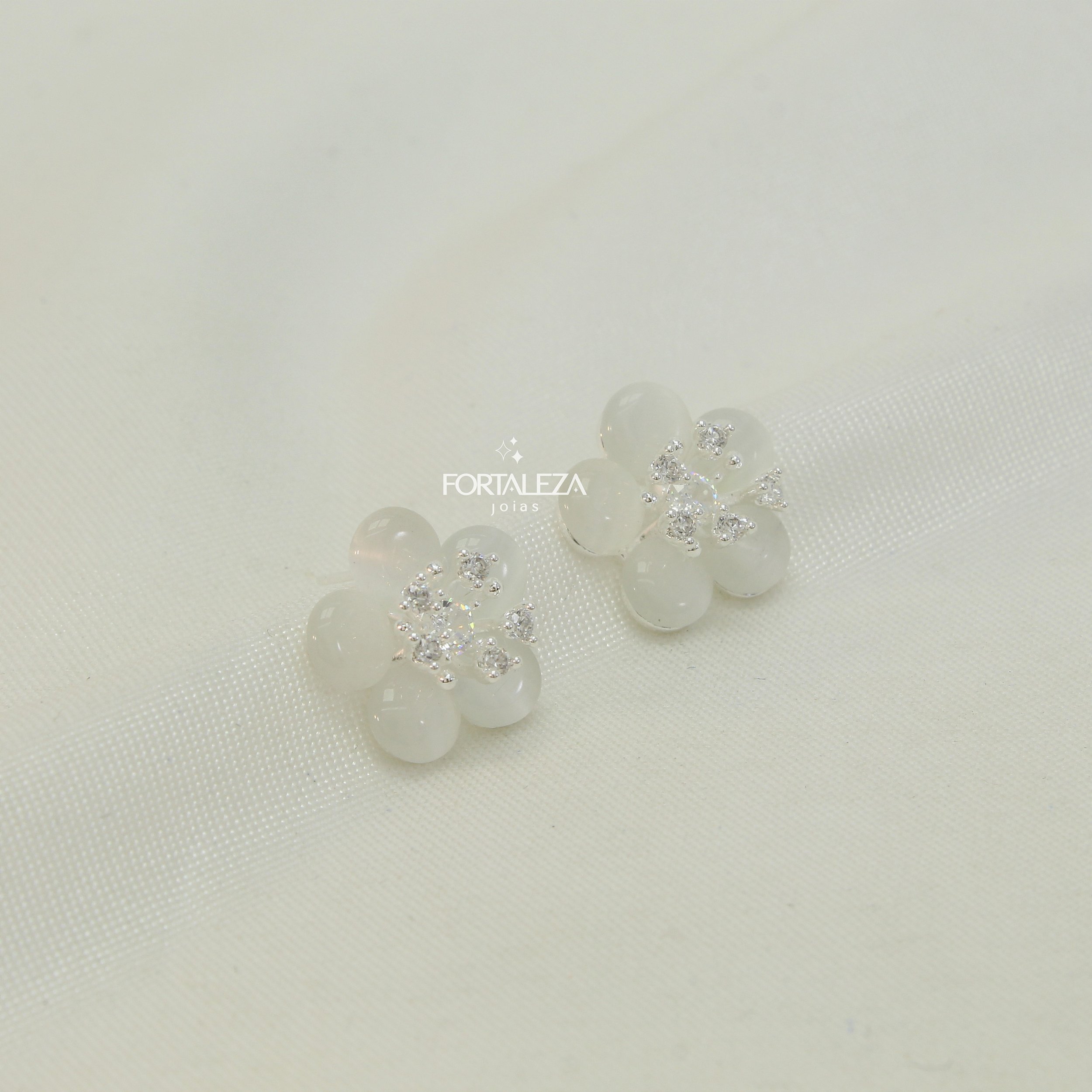 Brinco de Flor com Pétalas Madrepérola Banhado a Prata