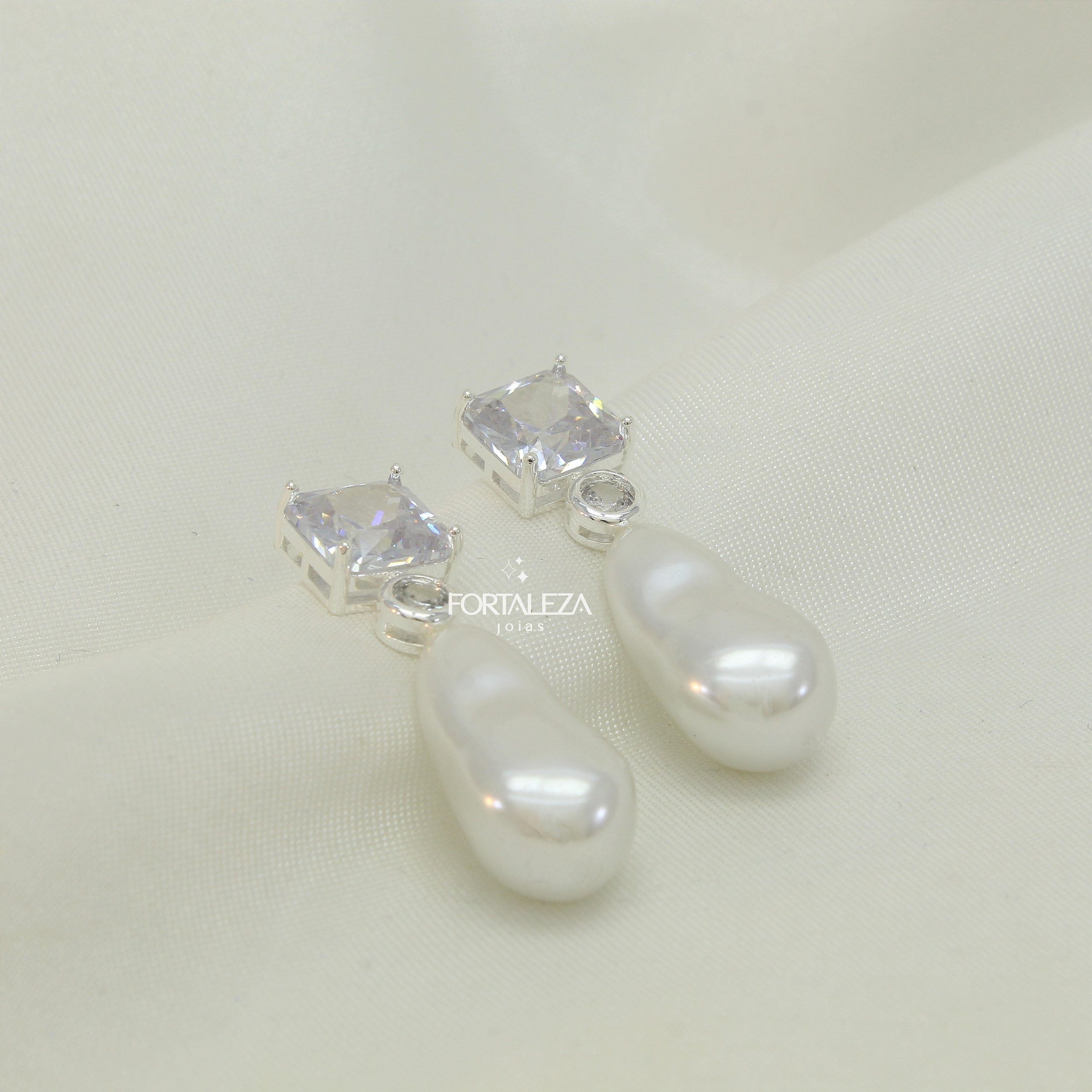 Brinco de Pérola Barroca com Zircônia Cristal Banhado a Prata
