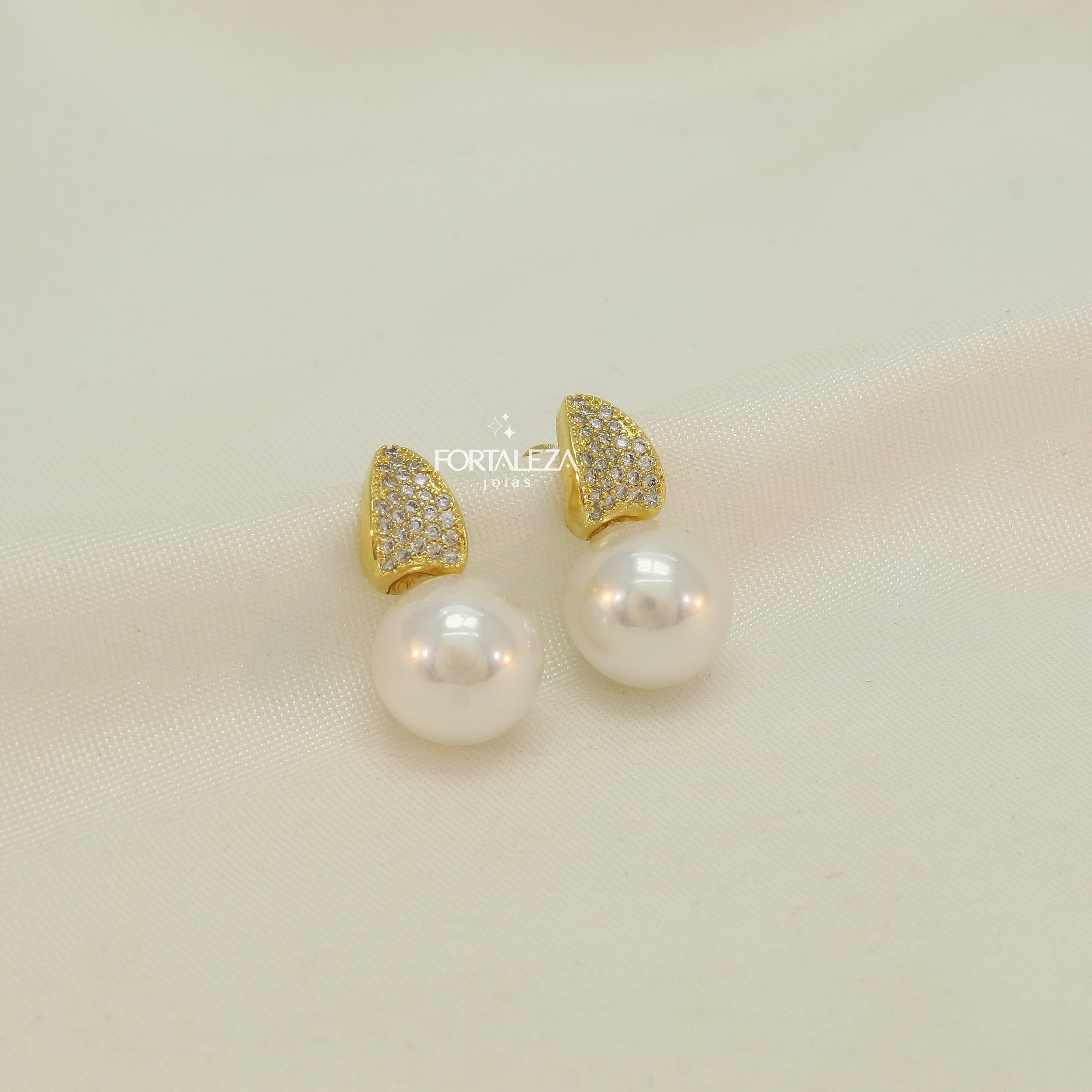 Brinco de Pérola com Zircônia Cristal Banhado a Ouro 18k