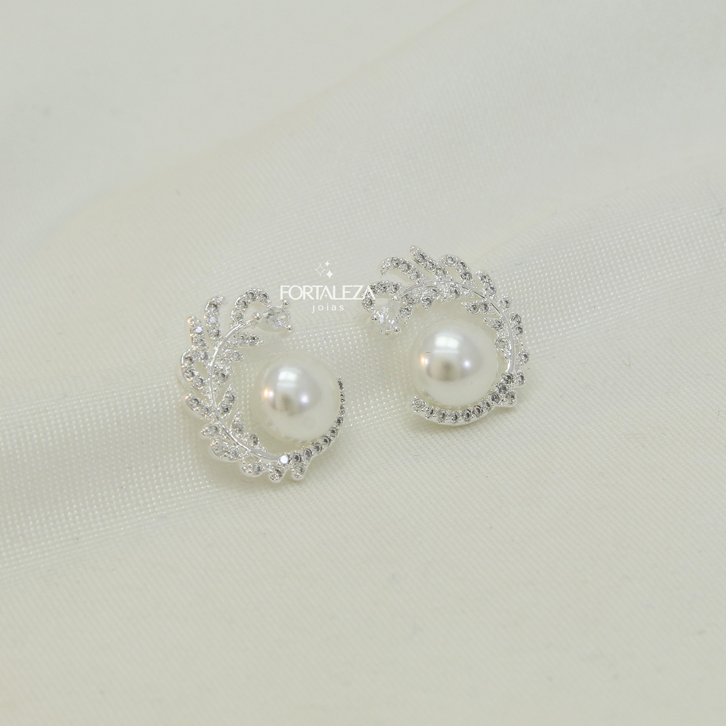 Brinco de Pérola e Cravejado com Zircônia Cristal Banhado a Prata