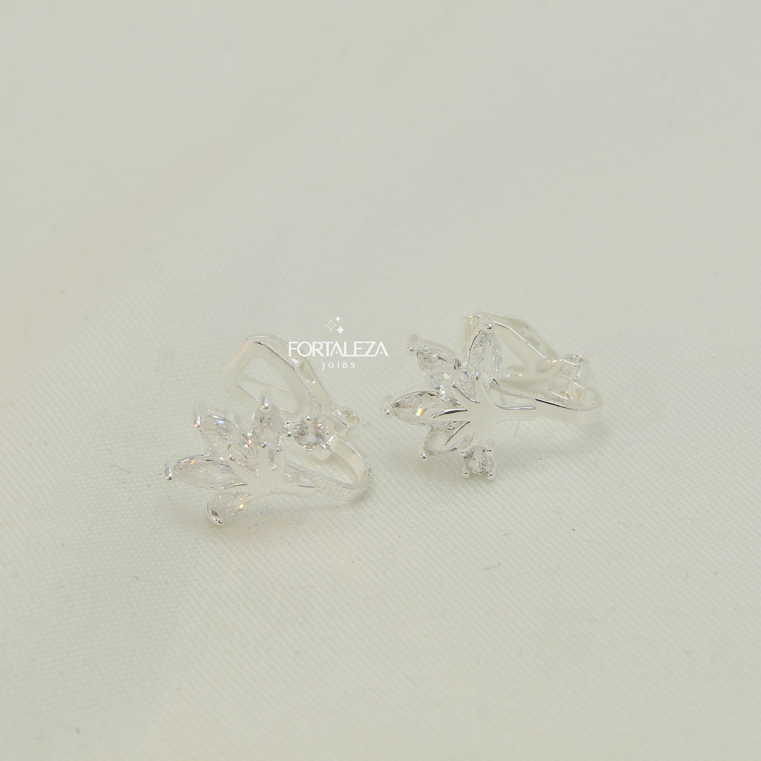 Brinco de Pressão de Arvore com Zircônias Cristal Banhado a Prata