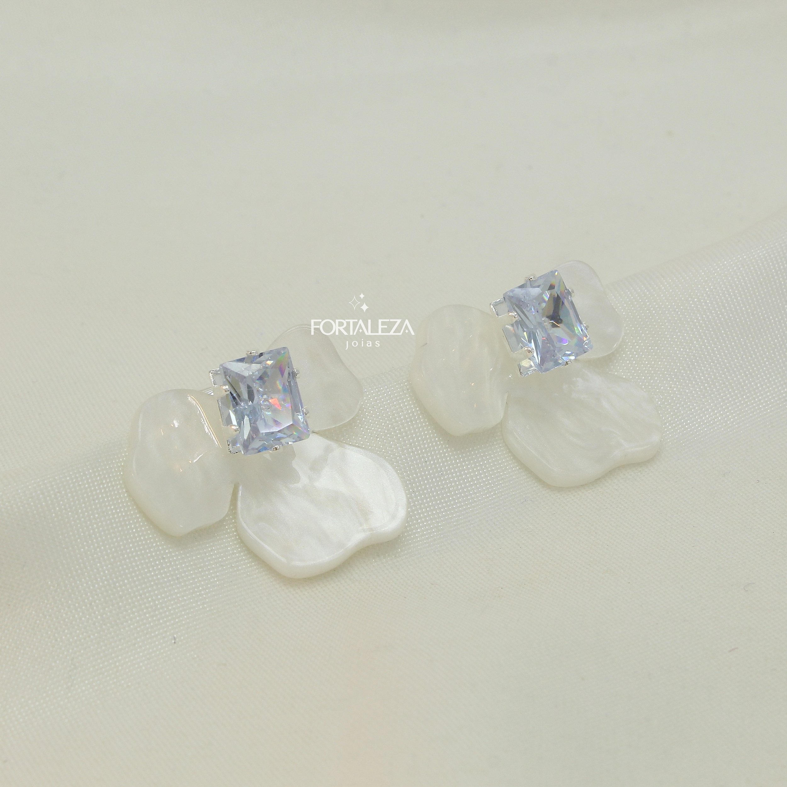 Brinco Flor de Resina com Zircônia Cristal Banhado a Prata