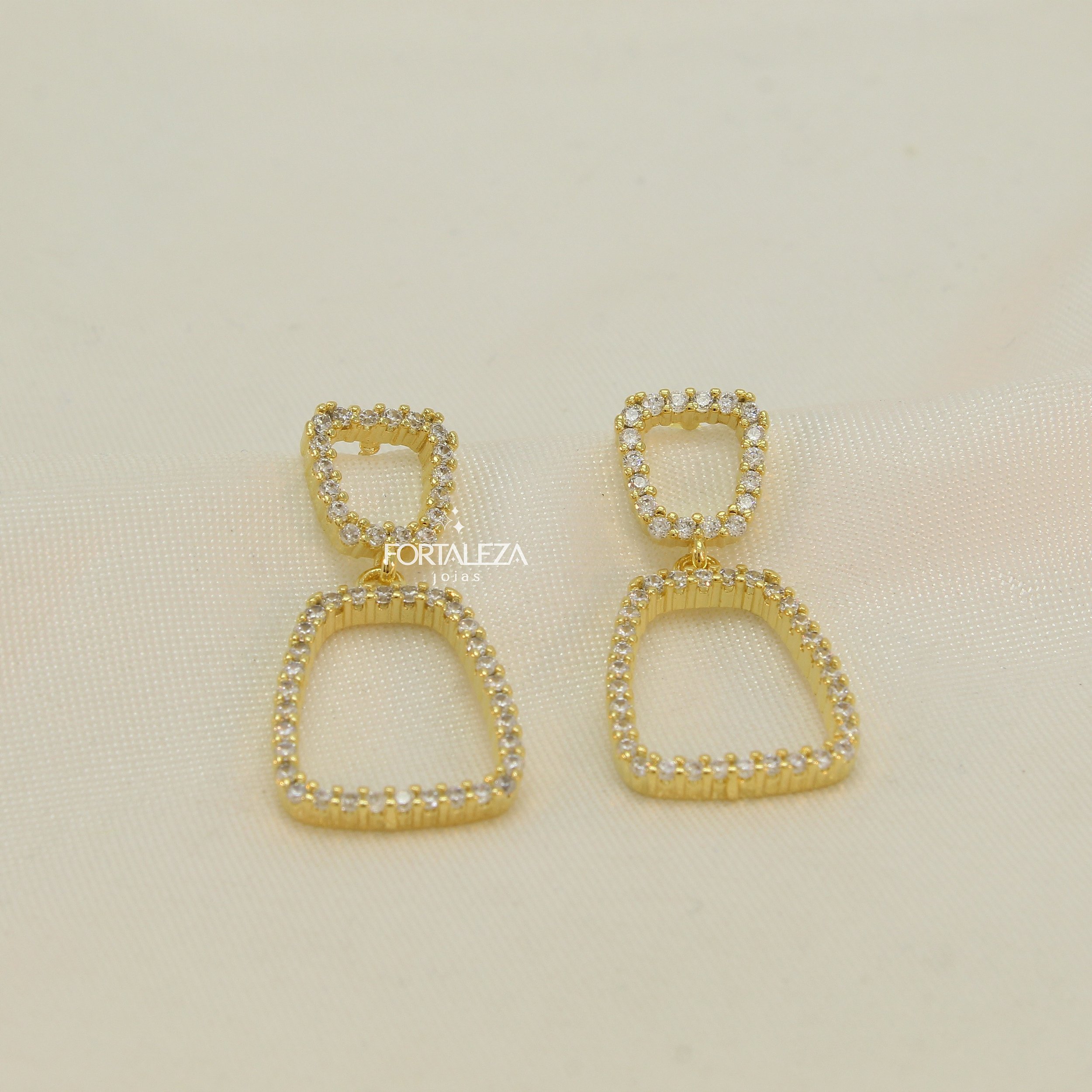 Brinco Geométrico Cravejado com Zircônia Cristal Banhado a Ouro 18k