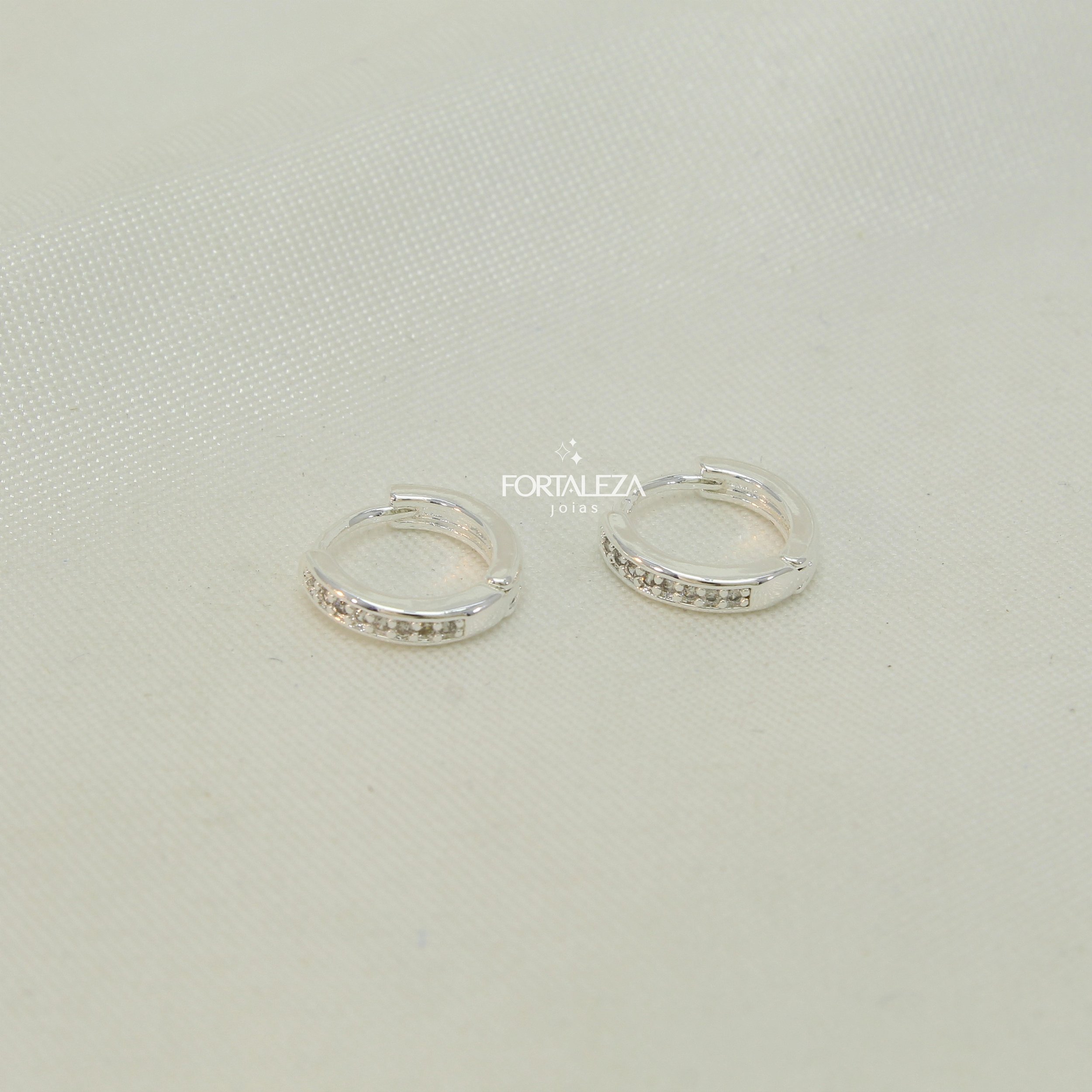 Brinco Mini Argola com Zircônia Cristal Banhado a Prata