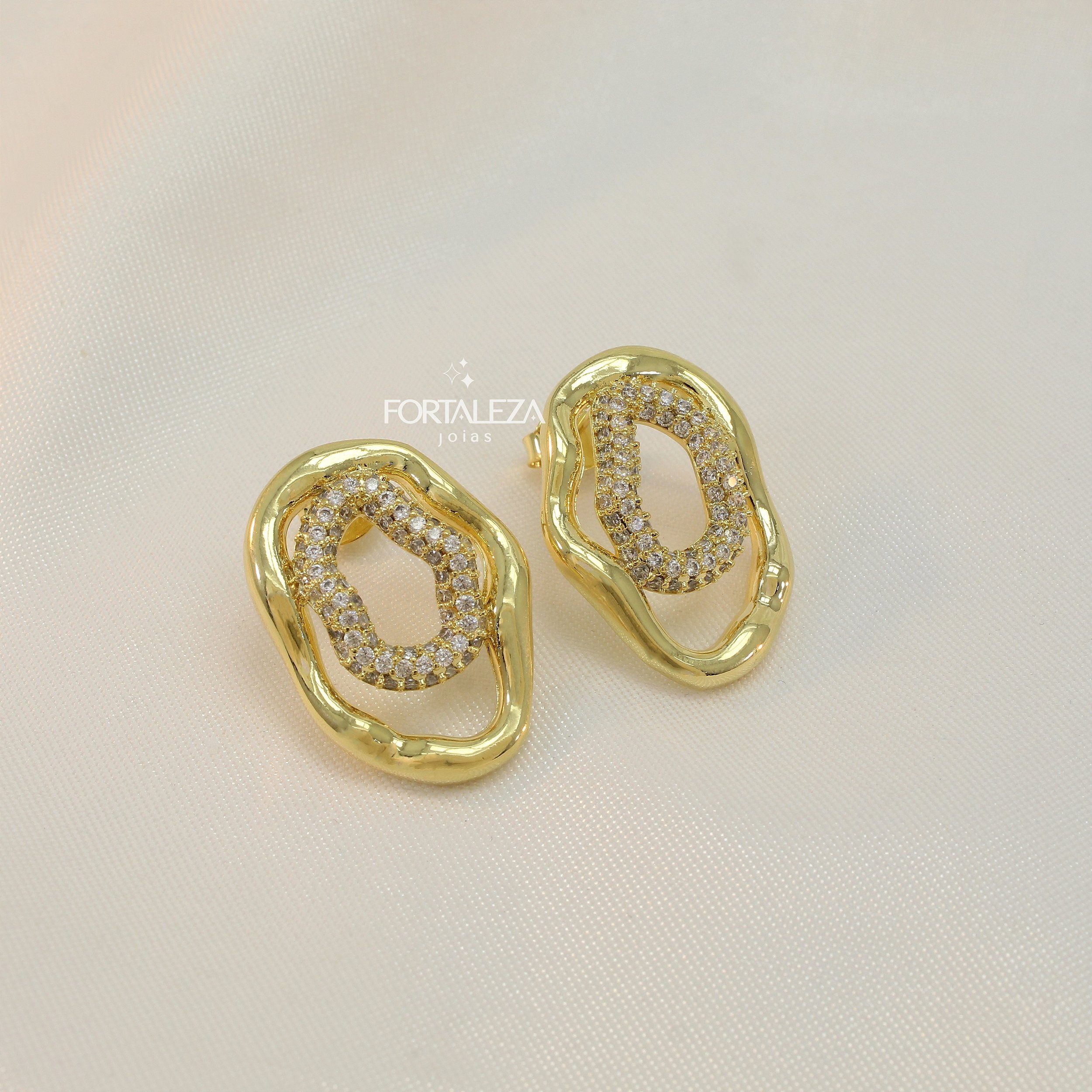 Brinco Orgânico com Detalhes Cravejados em Zircônia Cristal Banhado a Ouro 18k