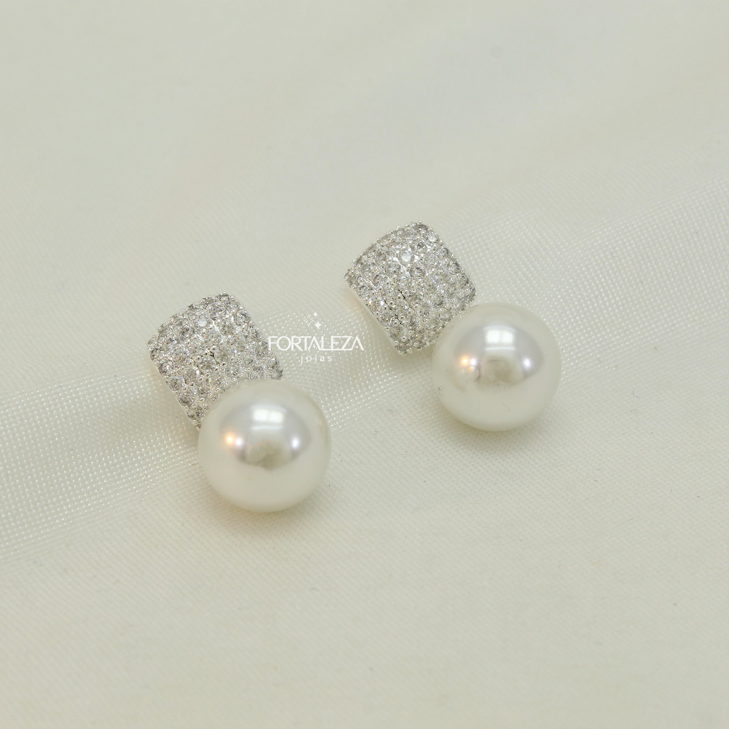Brinco Pavê com Pérola Pendente Banhado a Prata