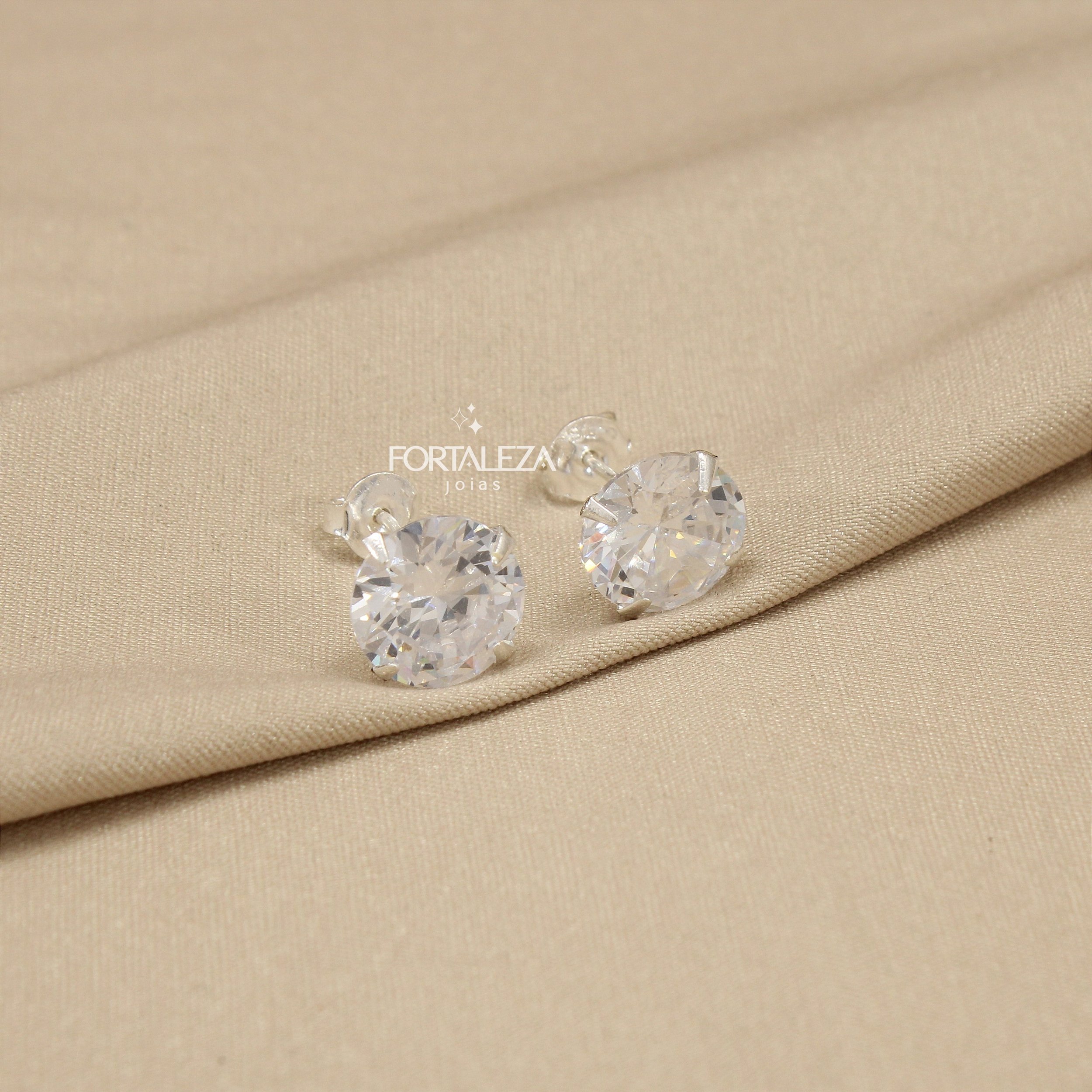 Brinco Ponto de Luz com Zircônia Cristal Banhado a Prata