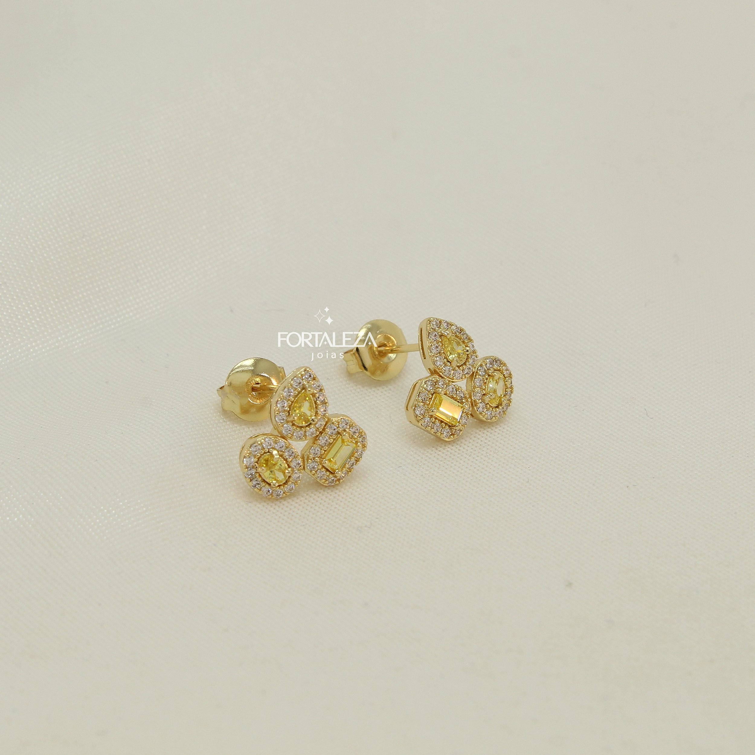 Brinco Sofisticado em Formas Geométricas Banhado a Ouro 18k
