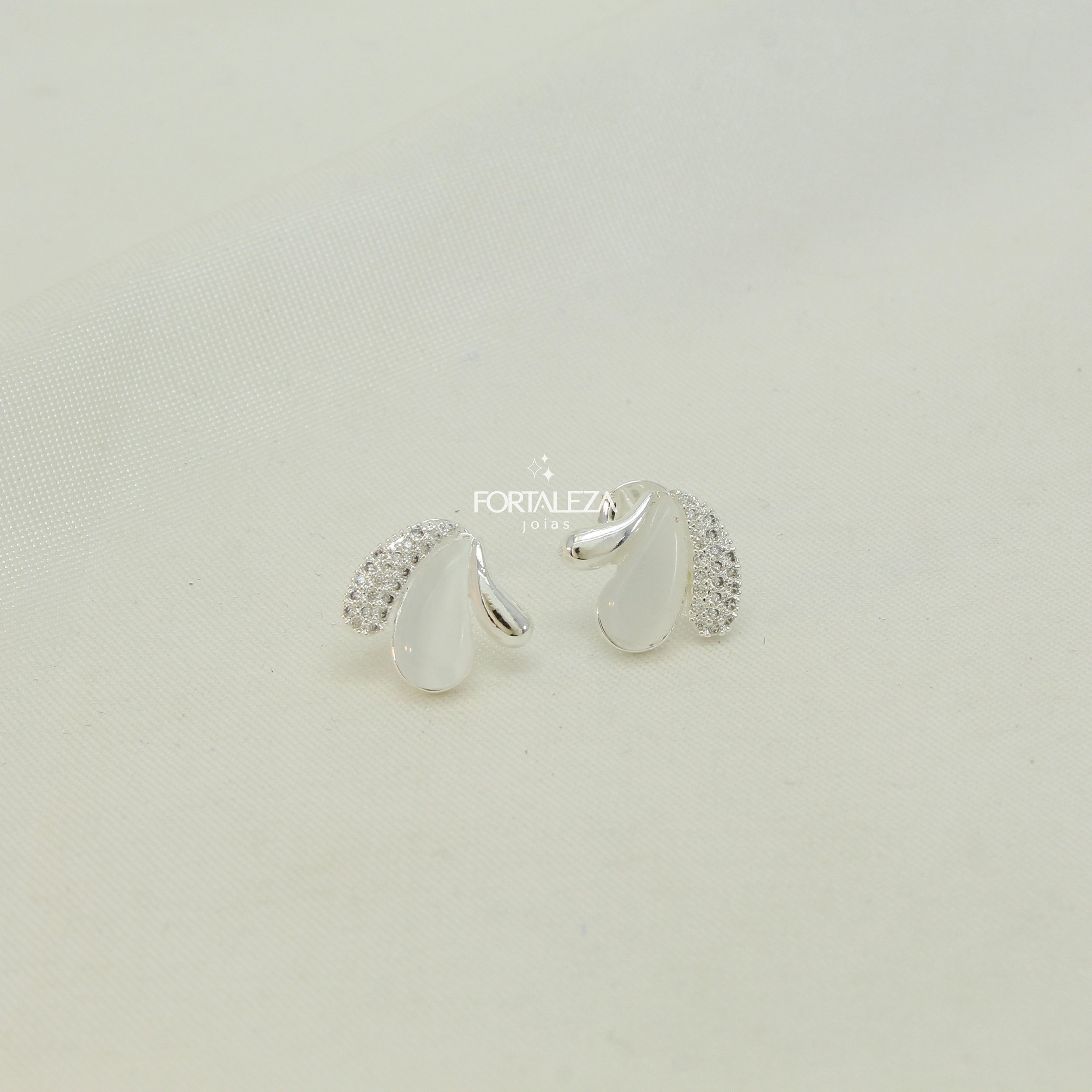 Brinco Três Pétalas Cravejada com Zircônia Cristal Banhado a Prata