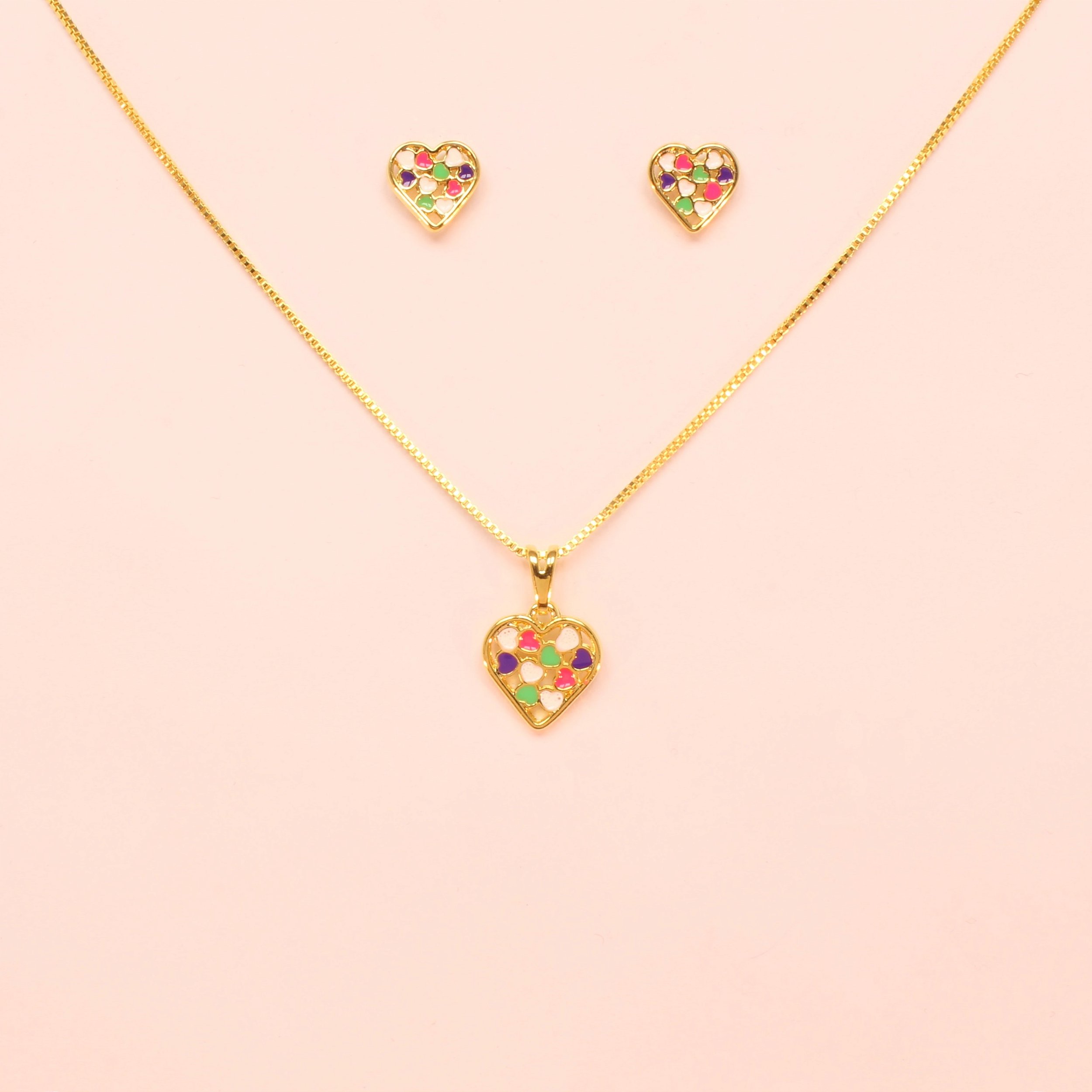 Conjunto Coração com Detalhe em Resina Folheado a Ouro 18k