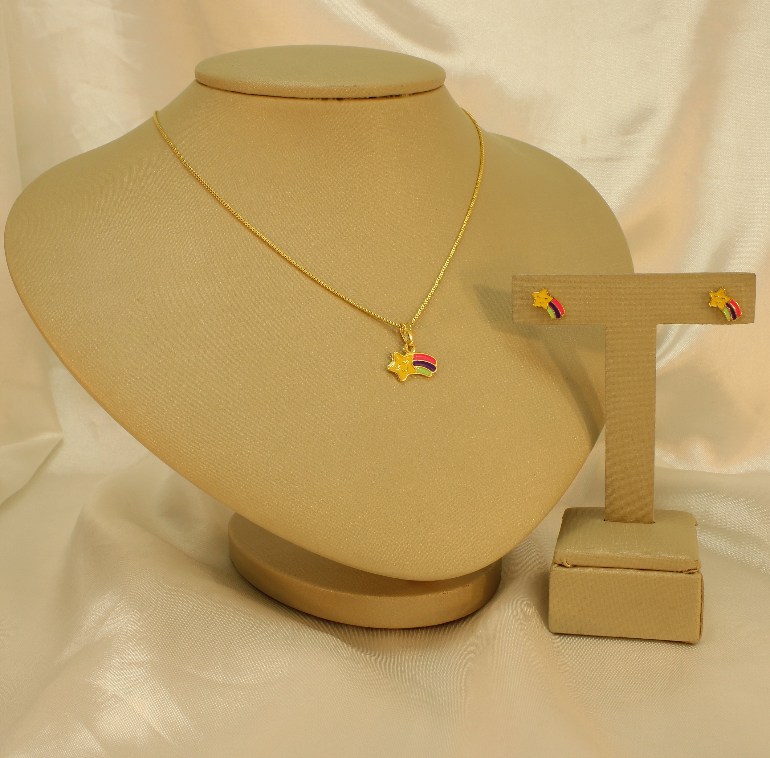 Conjunto Estrelinha e Arco Irís Folheado a Ouro 18k