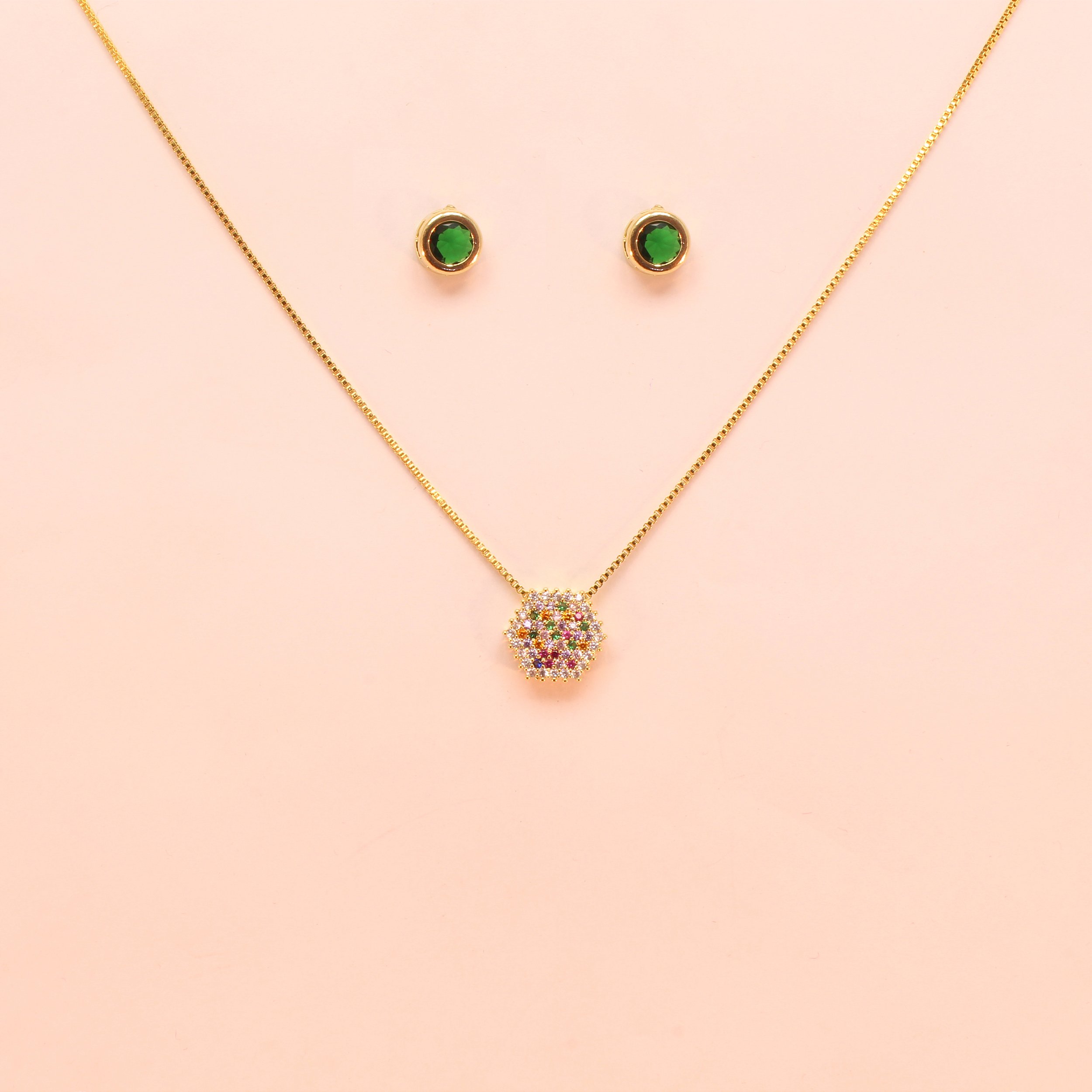 Conjunto Cravejado em Zircônias Folheado a Ouro 18k