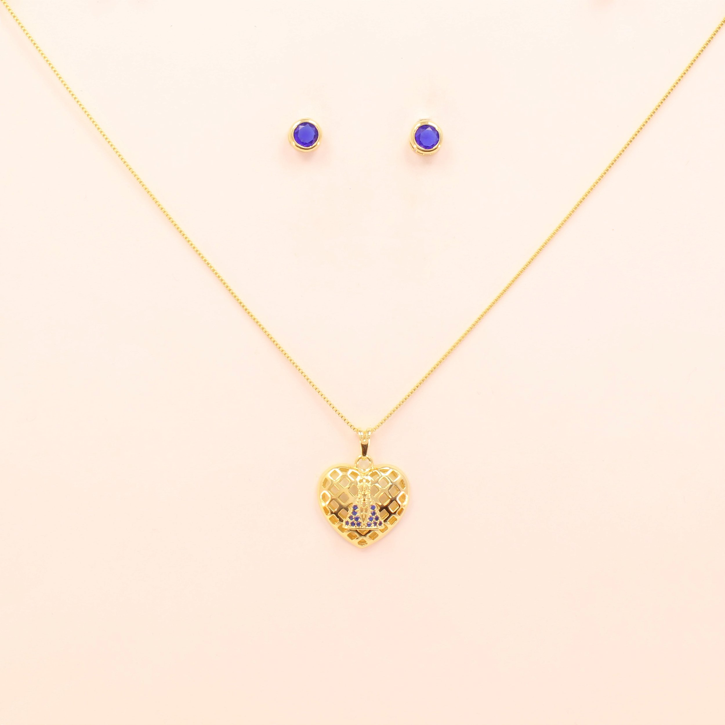 Conjunto Coração Nossa Senhora Aparecida Folheado a Ouro 18k