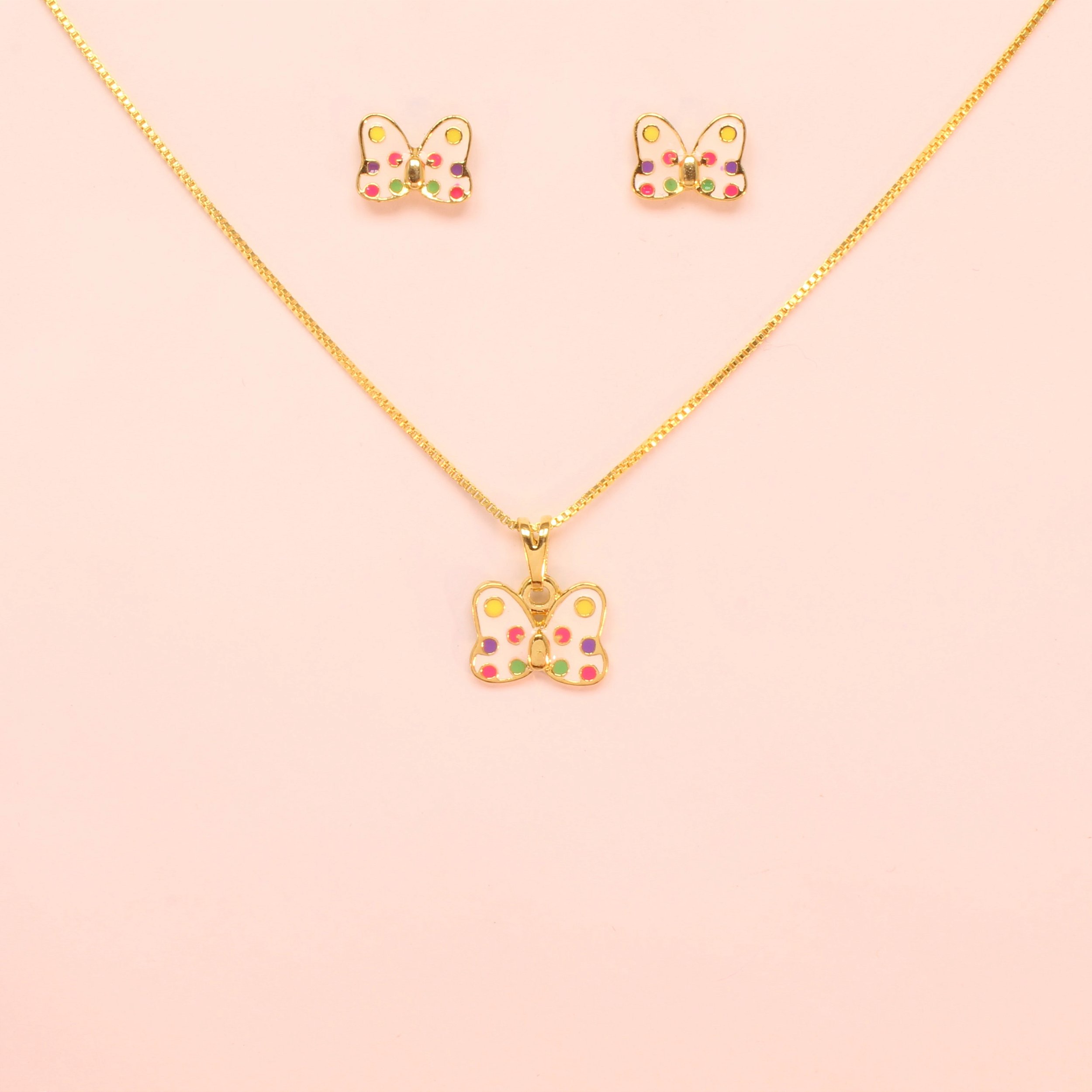 Conjunto Lacinho em Resina Folheado a Ouro 18k