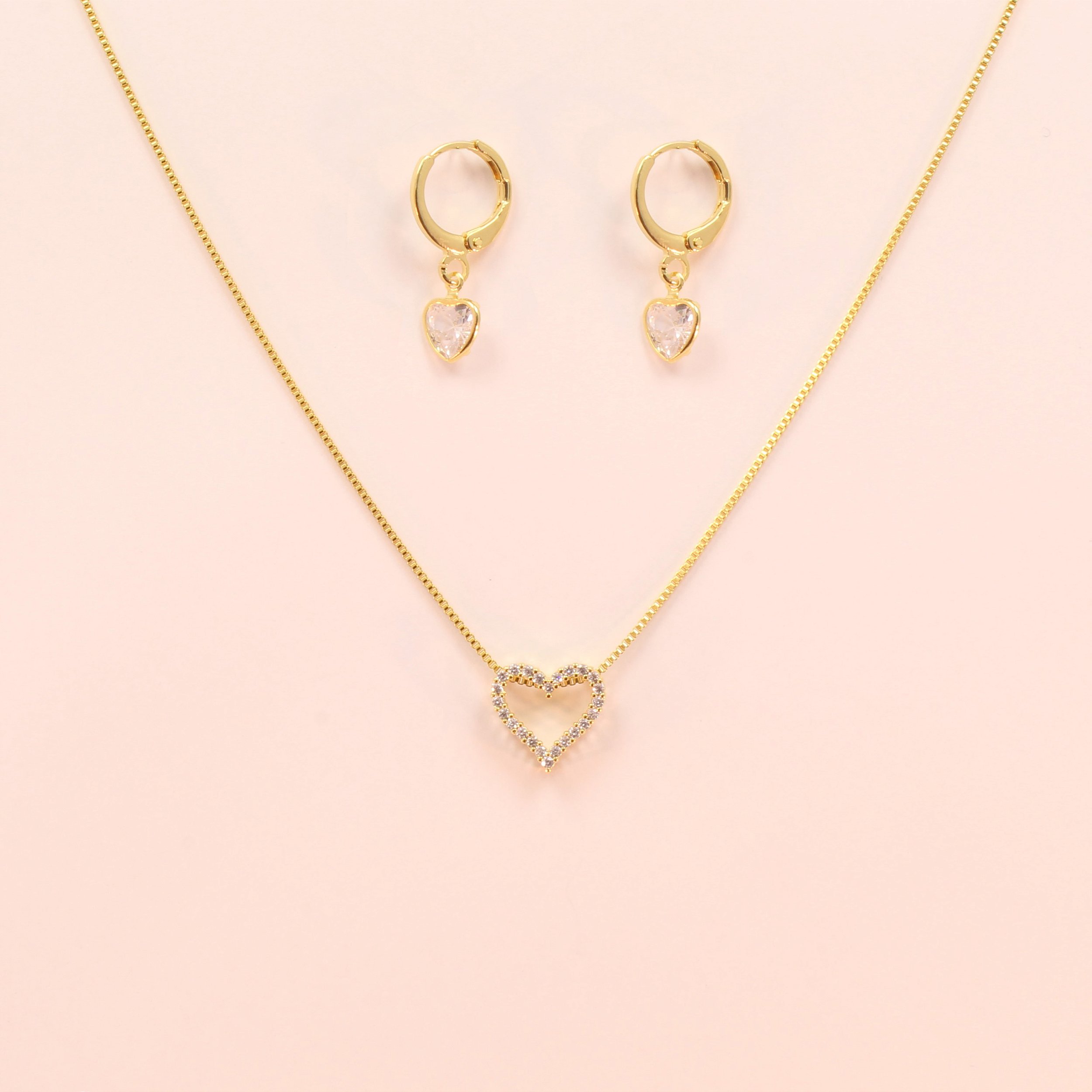 Conjunto Coração Cravejado em Zircônia Folheado a Ouro 18k