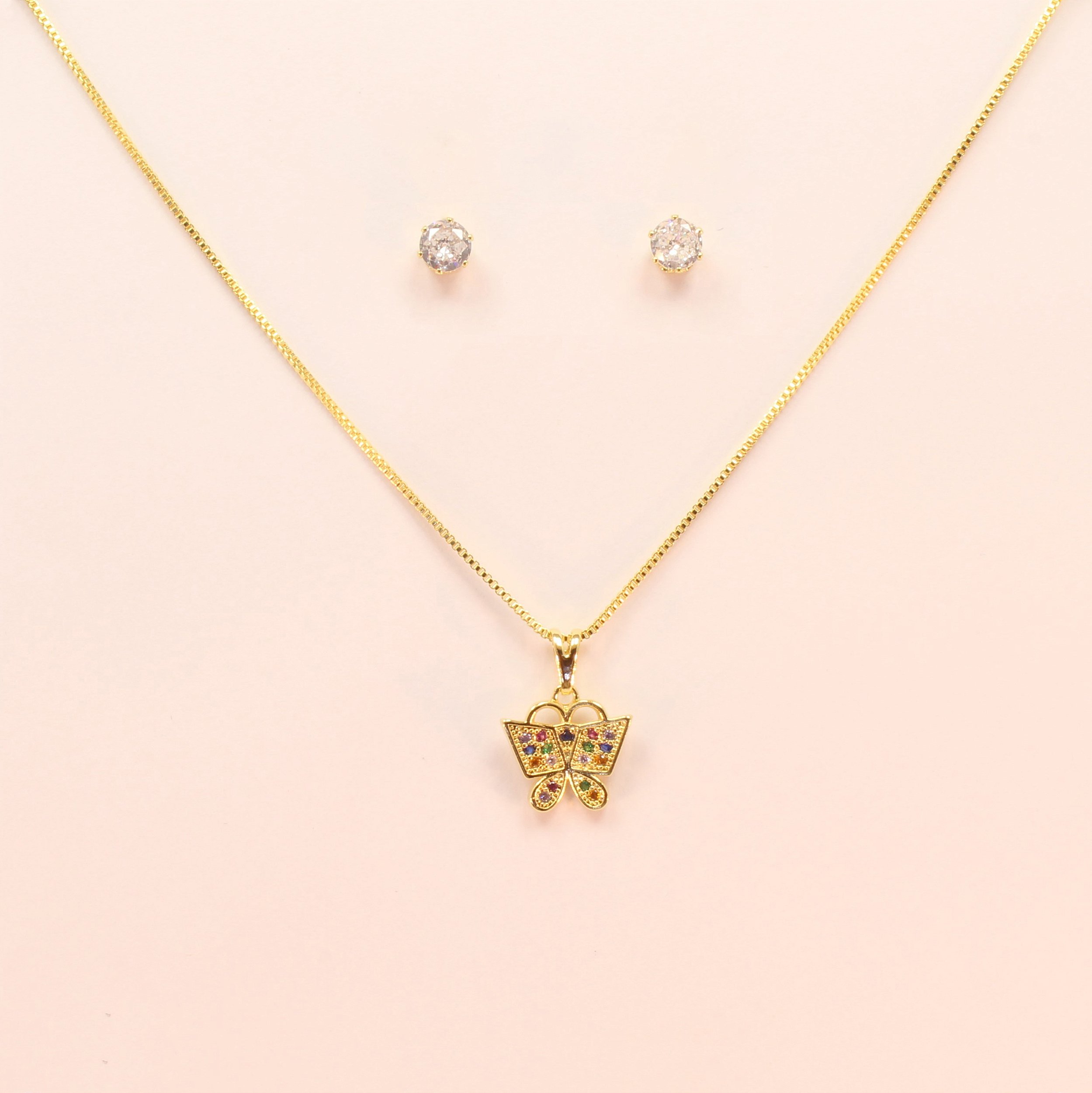Conjunto de Borboleta em Zircônias Folheado a Ouro 18k