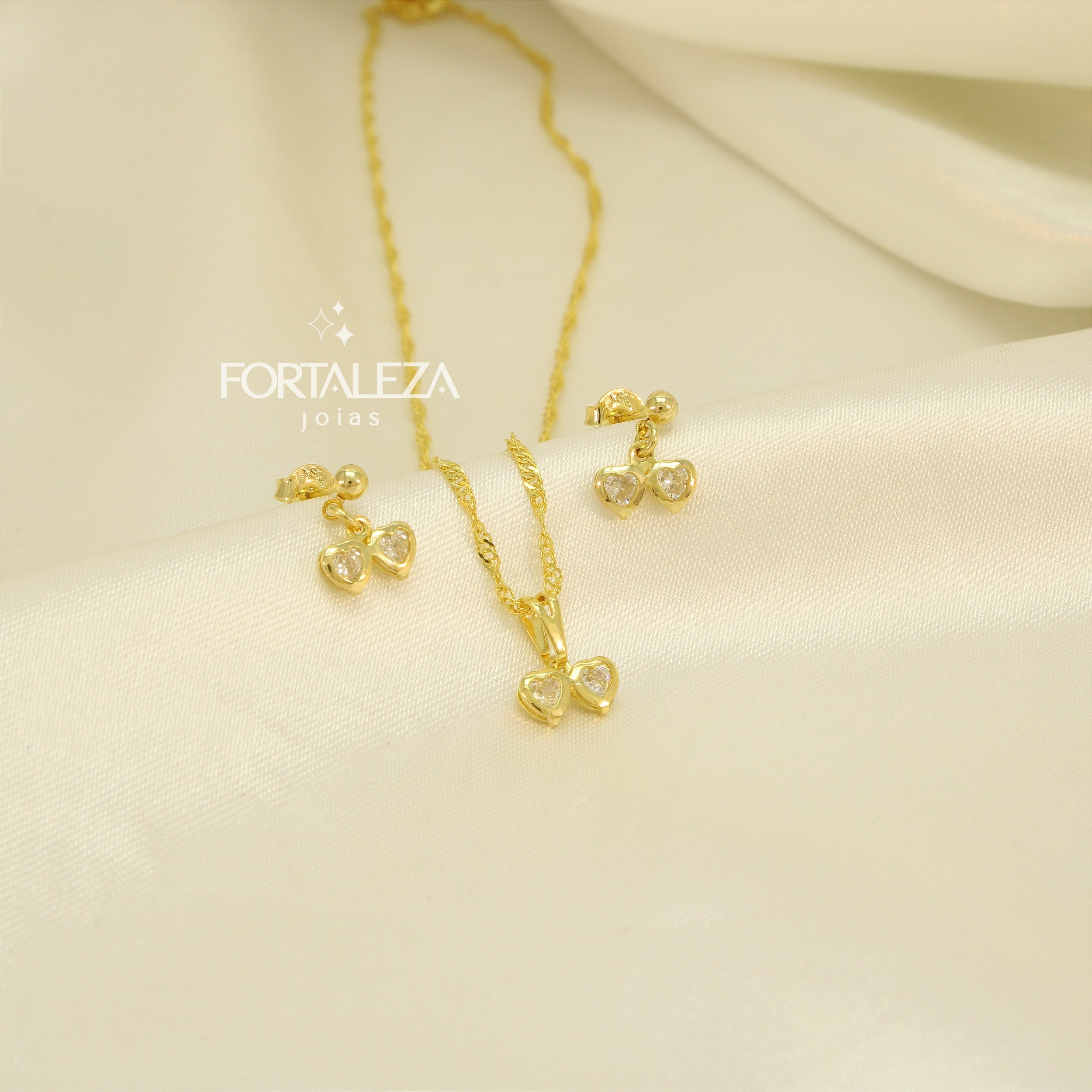 Conjunto Duplo Coração Folheado a Ouro 18k
