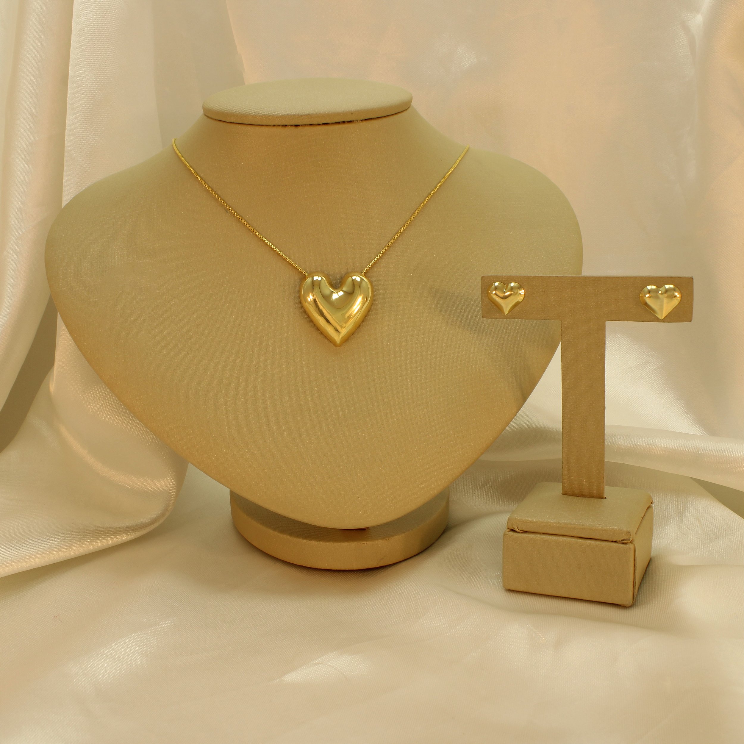 Conjunto com Design de Coração Polido Folheado a Ouro 18k